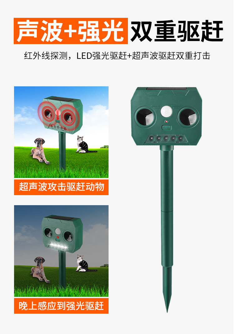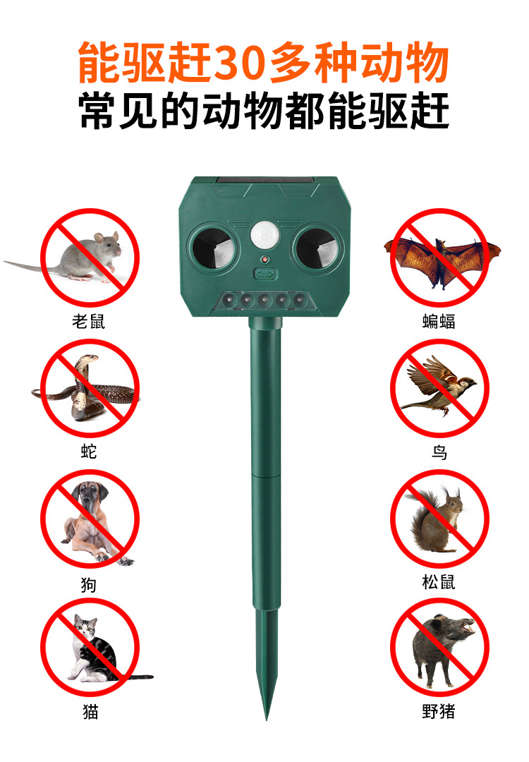 Al aire libre animal repelente ultrasónico ratón repelente infrarrojo inducción ultrasónico pájaro repelente de insectos