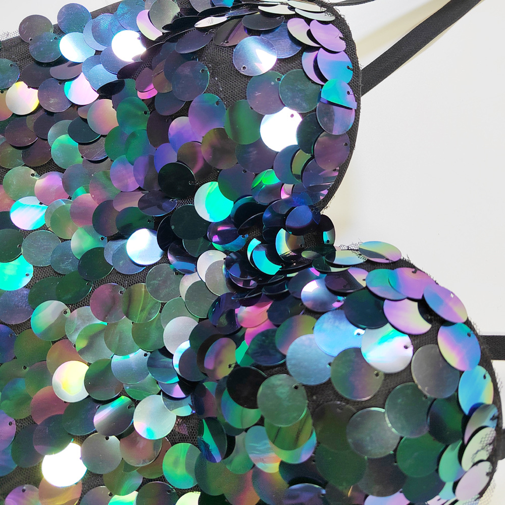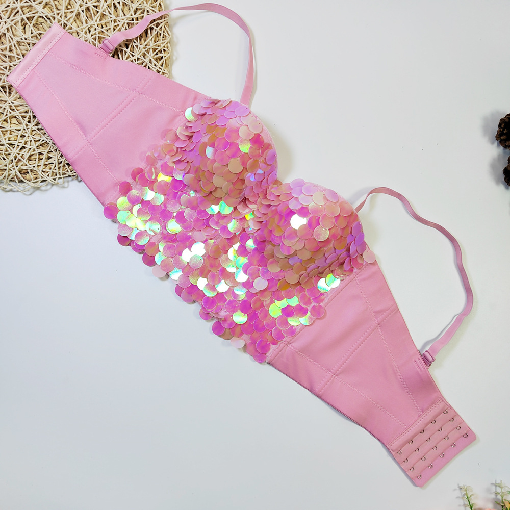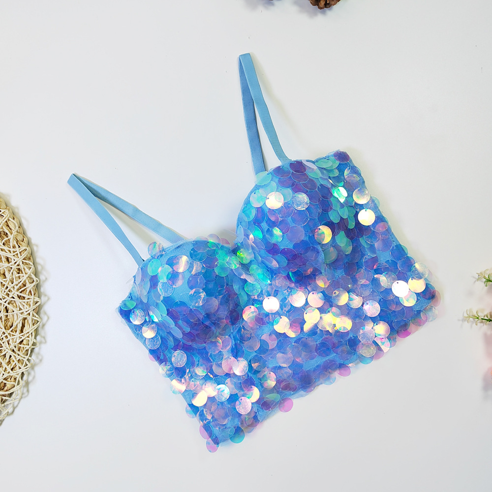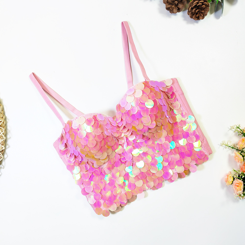 Amazon AliExpress corsé Fishbone sujetador desgaste exterior lentejuelas correa de cuentas coloridas escamas pescado envuelto chaleco pecho