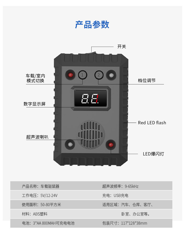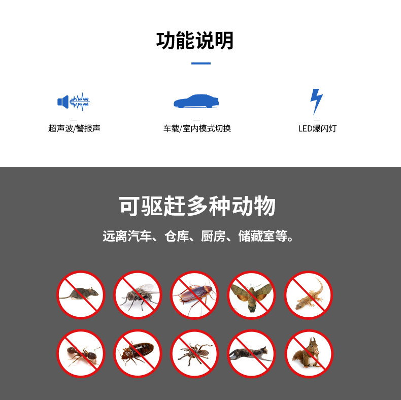 Nuevo coche ratón repelente ultrasónico ratón repelente coche motor ratón repelente 12V/5V fuente de alimentación flash LED
