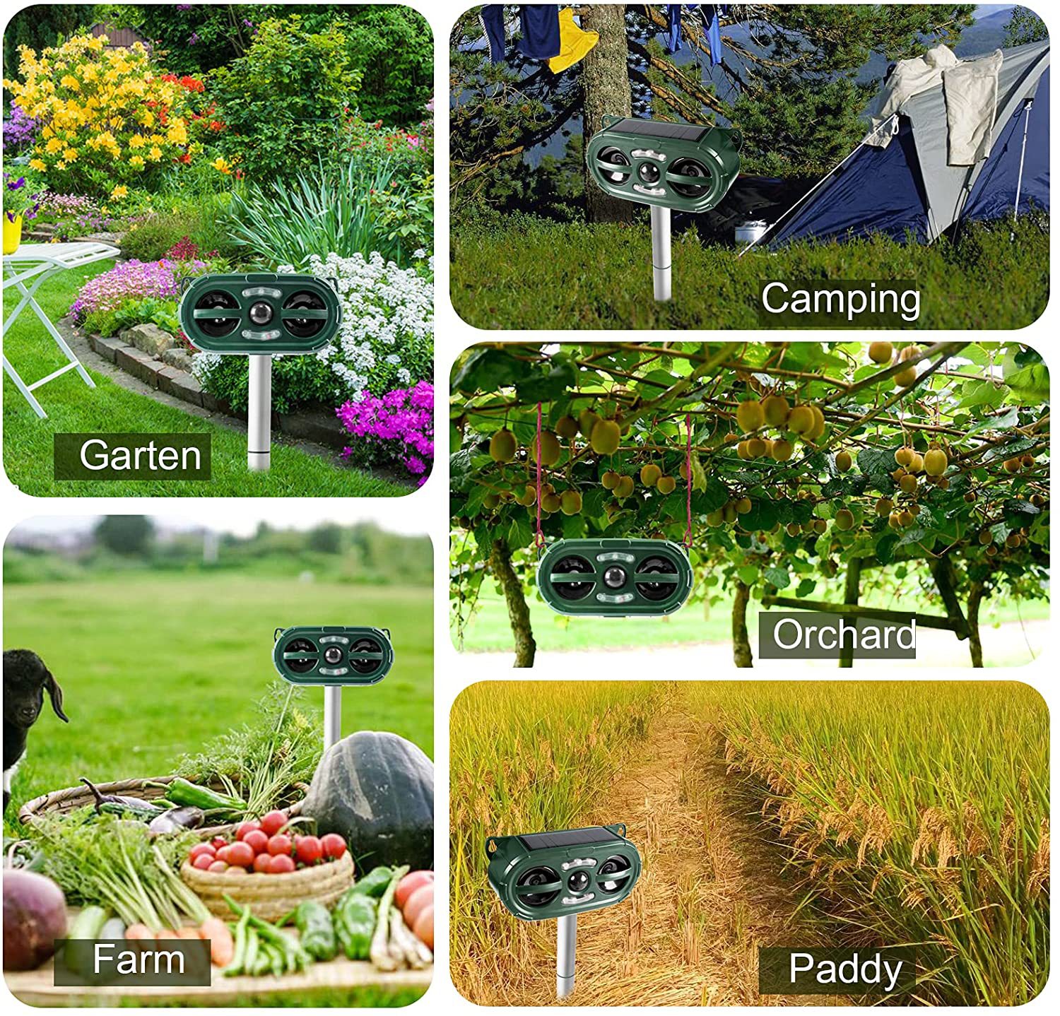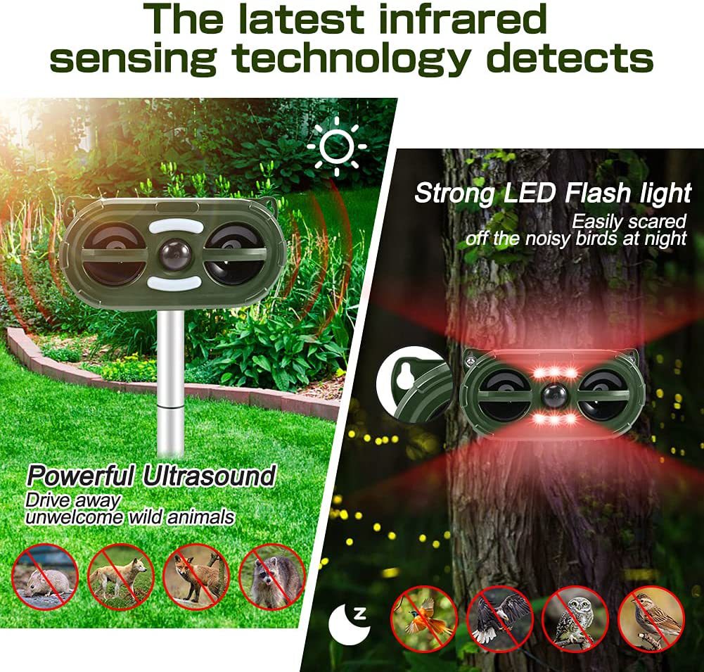 Nuevo repelente de animales transfronterizo, repelente de pájaros solar para exteriores, repelente de perros, repelente ultrasónico de ratas con LED intermitente