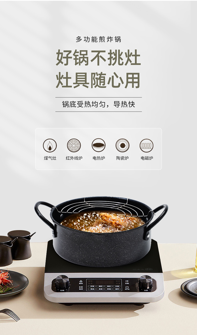 Mini freidora estilo japonés tempura antiadherente sartén hogar Cocina de inducción de gas de fondo plano freidora de filtro de aceite