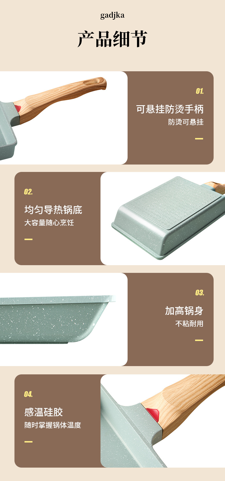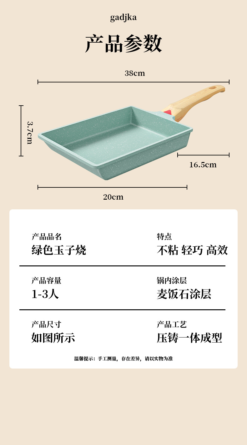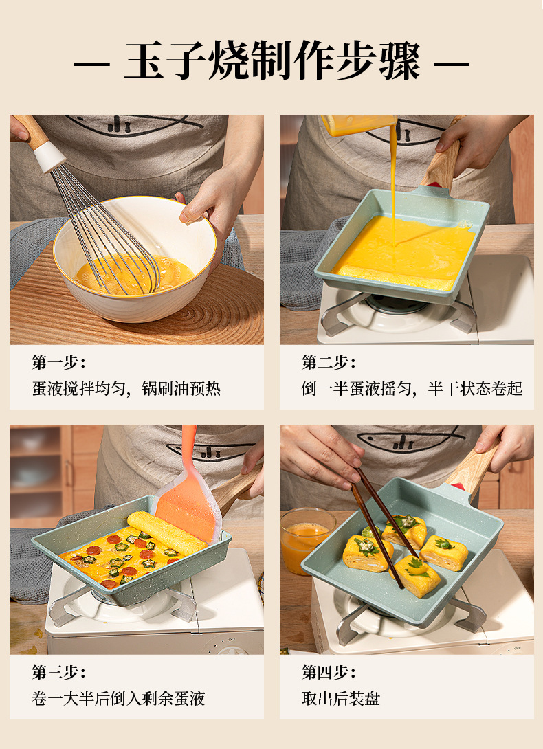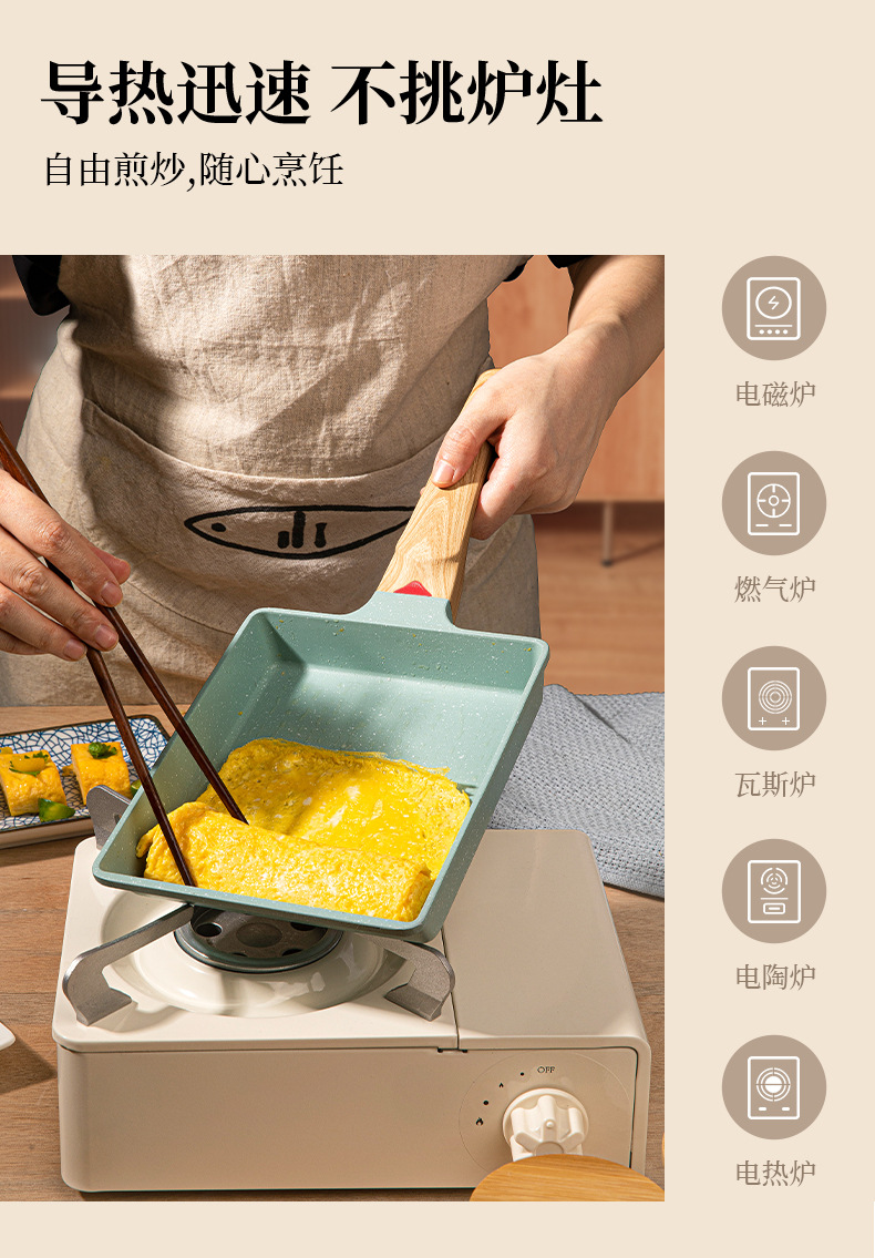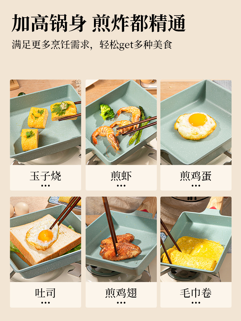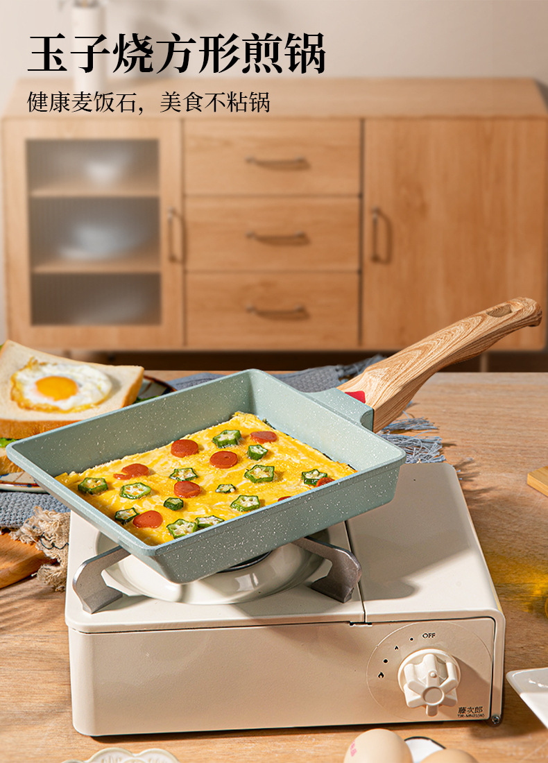 Estilo japonés Jade asado cuadrado mini sartén antiadherente grueso huevo asado maifan piedra pequeña sartén huevo frito hogar desayuno plana olla