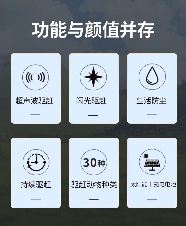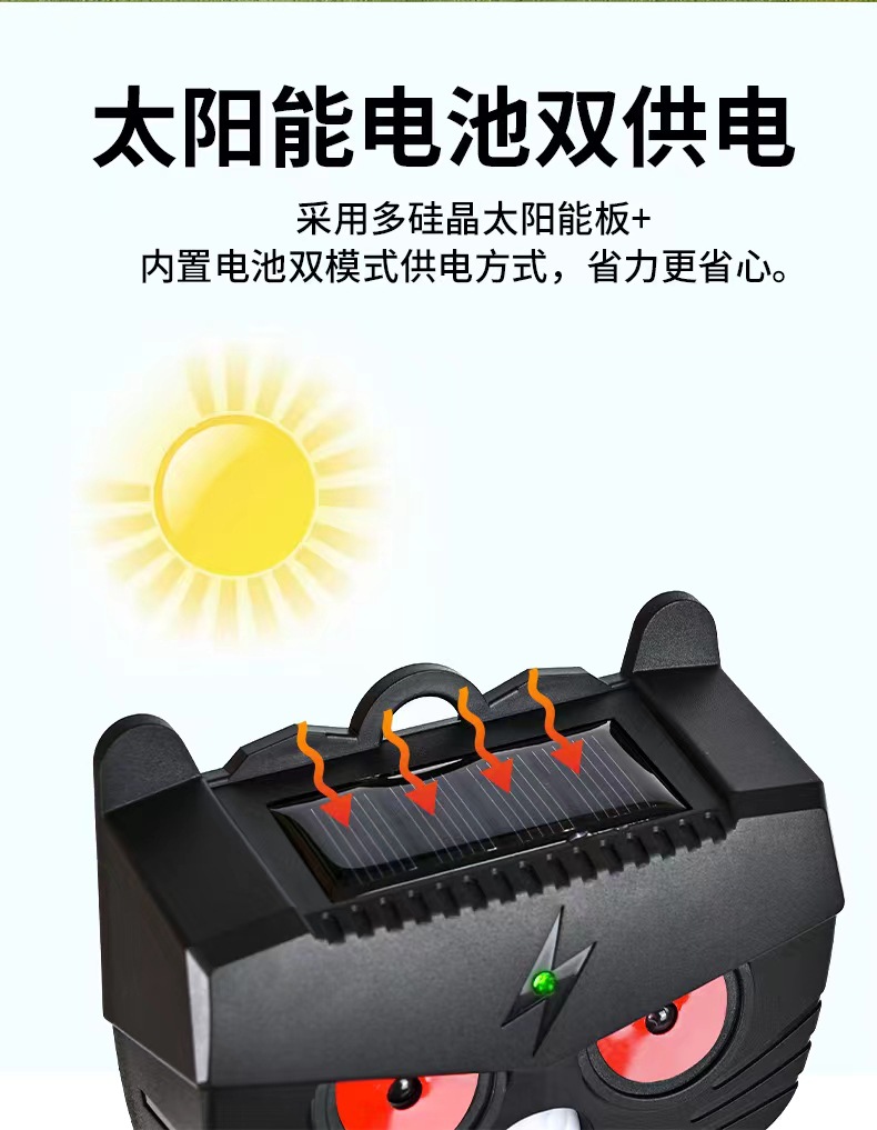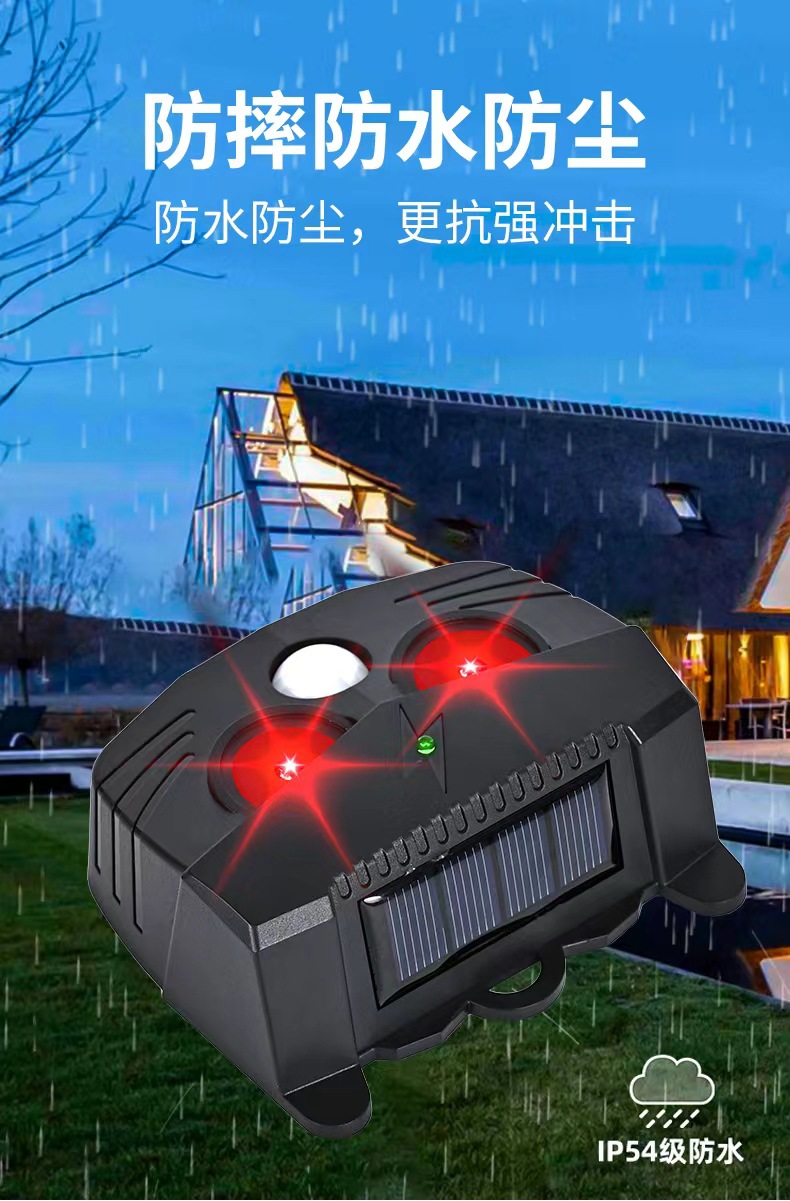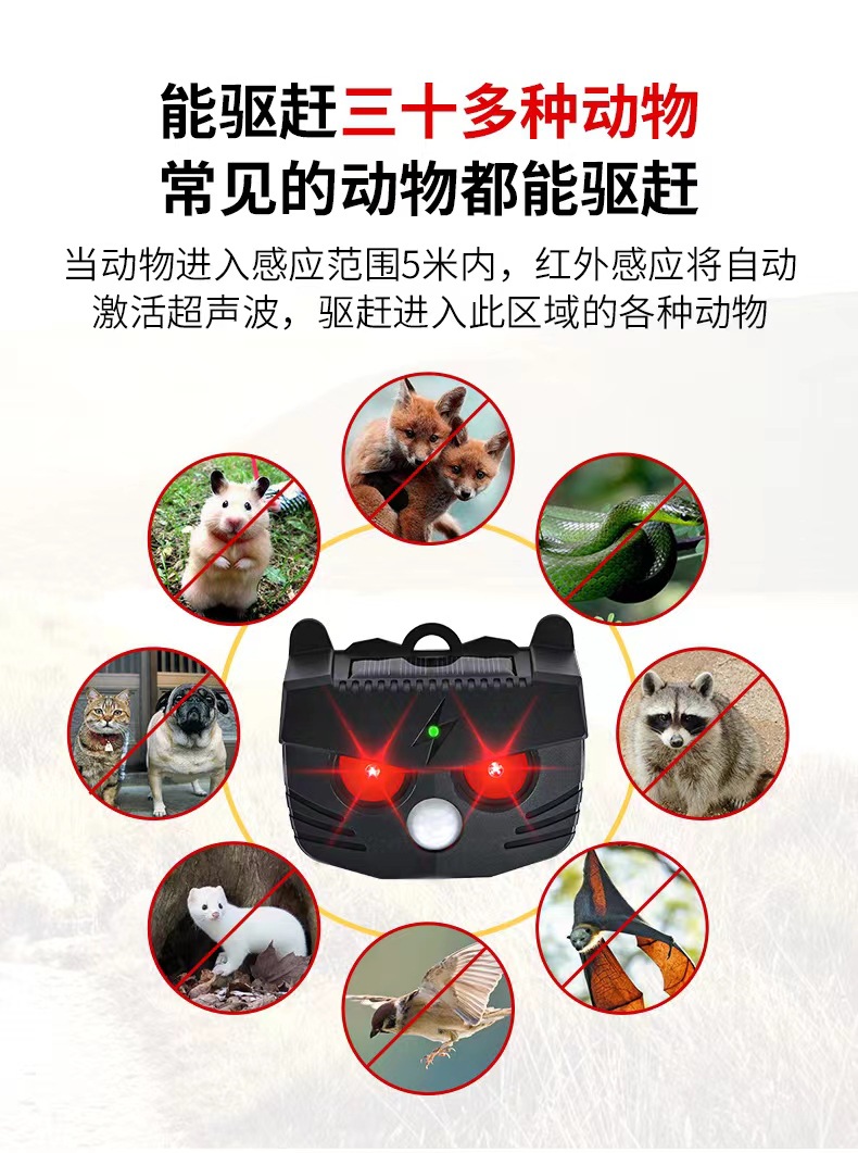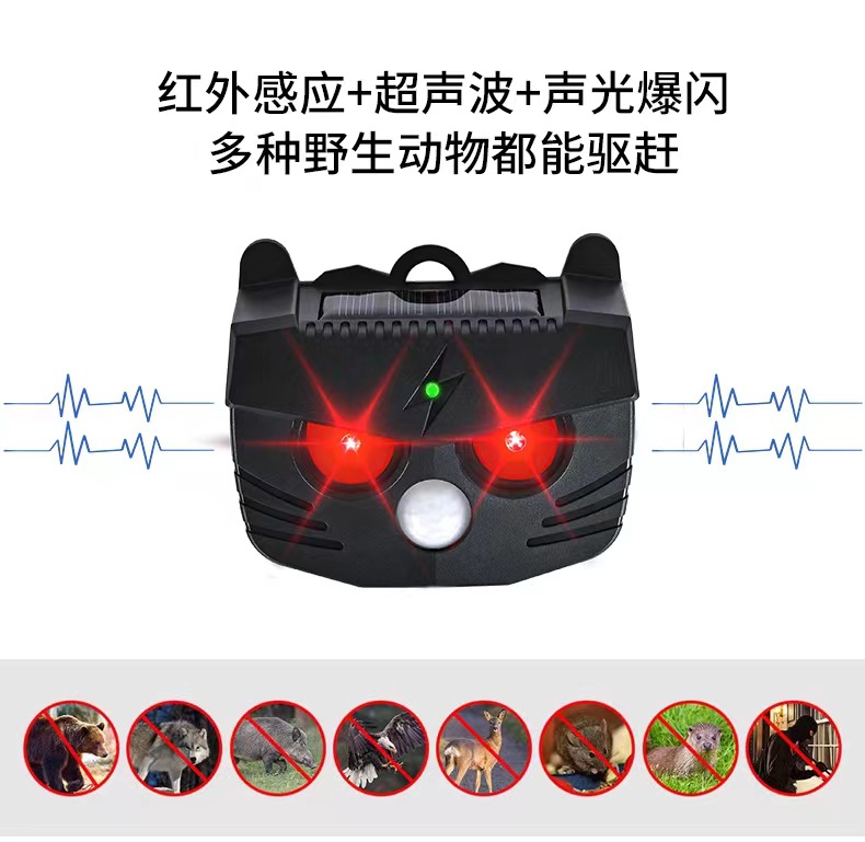 Repelente de ratones solar, repelente de animales totalmente automático, repelente de pájaros ultrasónico inteligente, repelente de serpientes, fábrica de origen