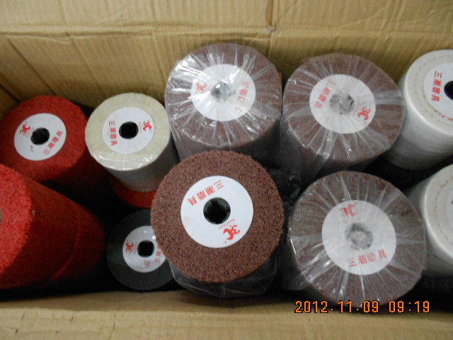 Rueda de trefilado de acero inoxidable endurecido de la marca Sanchao 120*100 núcleo cruzado rueda de pulido de fibra de nailon herramienta de trefilado
