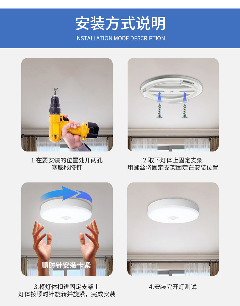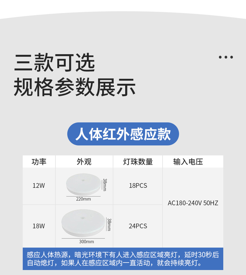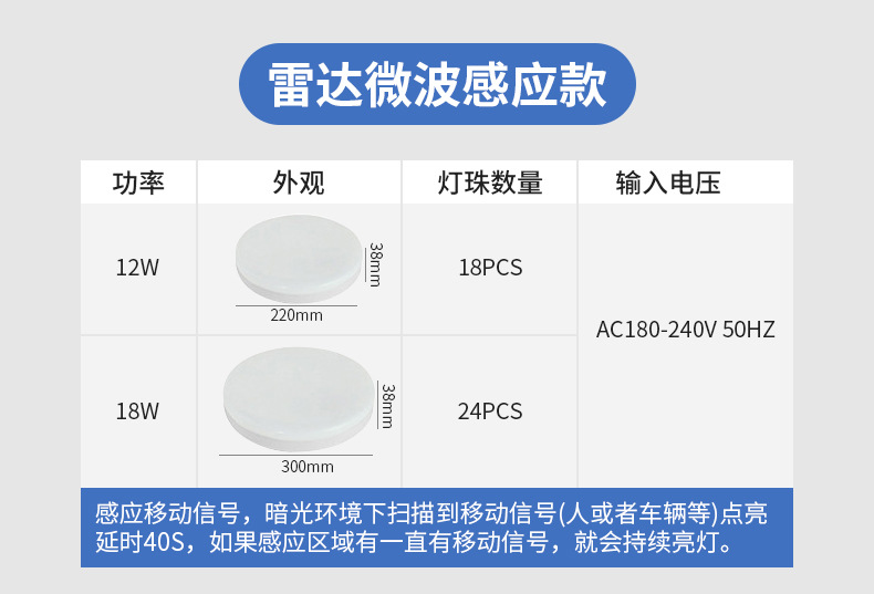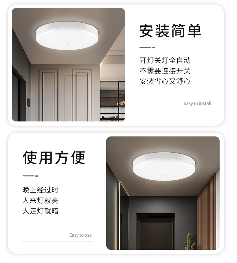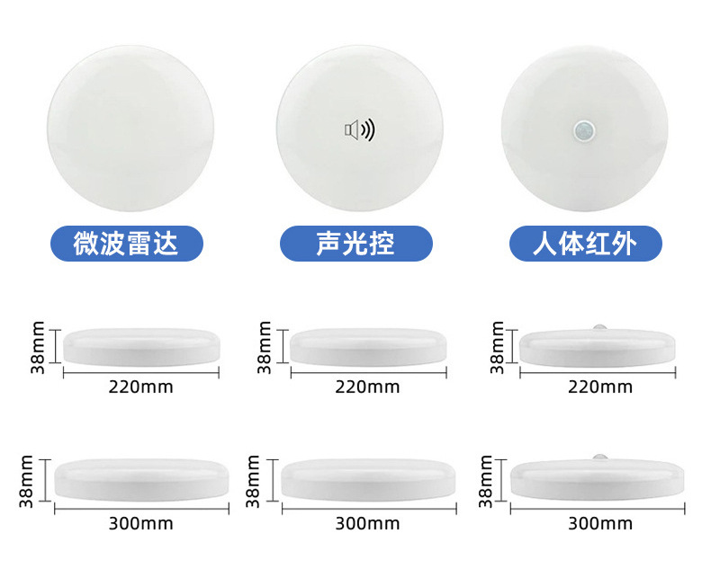 Lámpara de techo de inducción led infrarrojo del cuerpo humano piso pasillo garaje inteligente inducción de sonido y control de luz lámpara de techo de radar