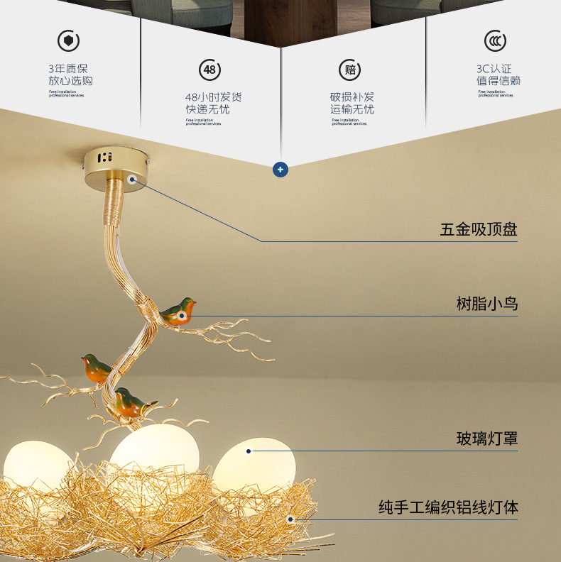 Nido de pájaro de estilo nórdico araña bar personalizado iluminación Internet celebridad moda restaurante creativo lámpara pasillo lámparas