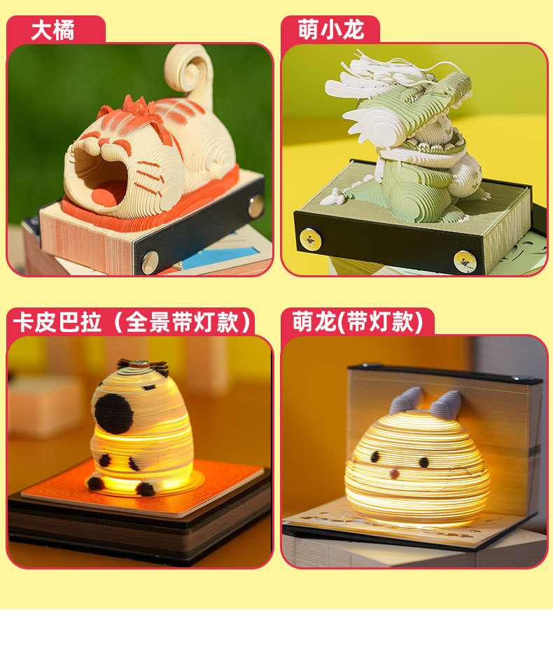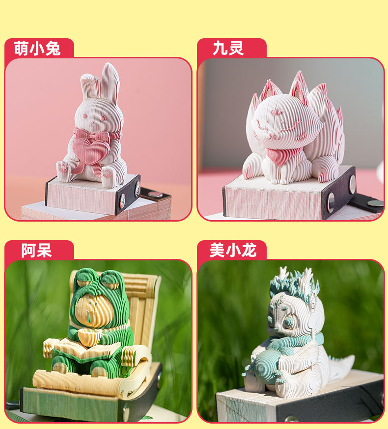 Notas adhesivas 3D emergentes con diseño de mascotas adorables y modernas, escultura de papel, arte desprendible, creativas, de alto valor, con dibujos animados encantadores.