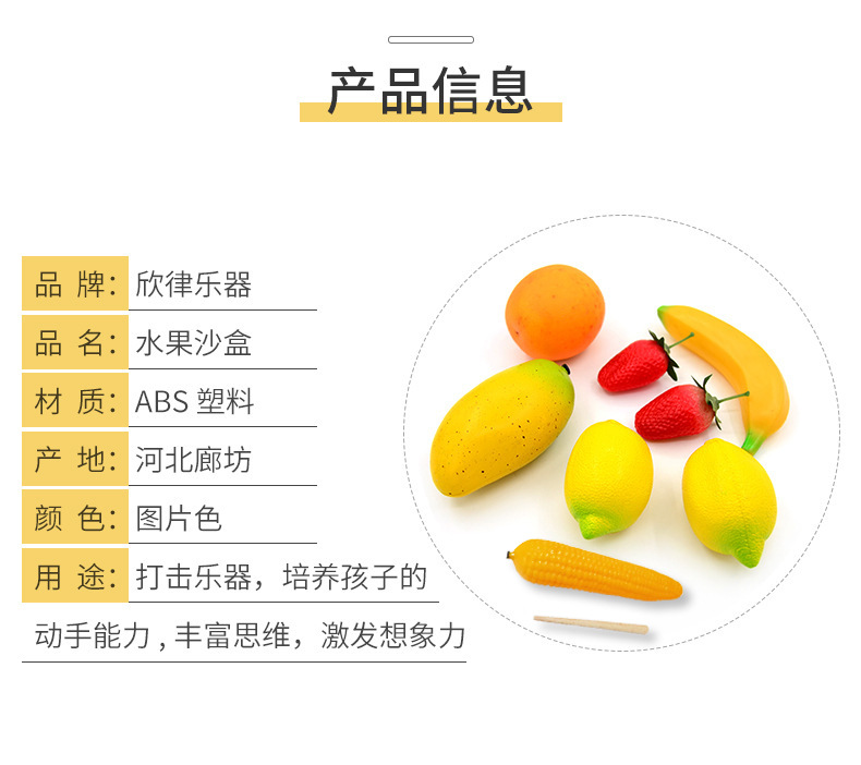 Orff instrumento musical bebé educación temprana simulación fruta caja de arena instrumento musical plástico tubo de arena jardín de infantes niños material didáctico