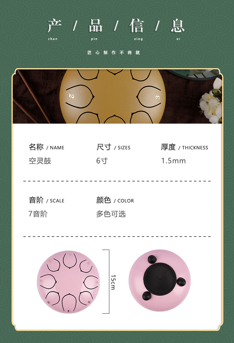 Lleno sílaba tambor hueco de 6 pulgadas de 8 tonos de tambor de loto tambor de acero tambor de lengua sin preocupaciones niños iluminación instrumento de percusión fuente de fábrica