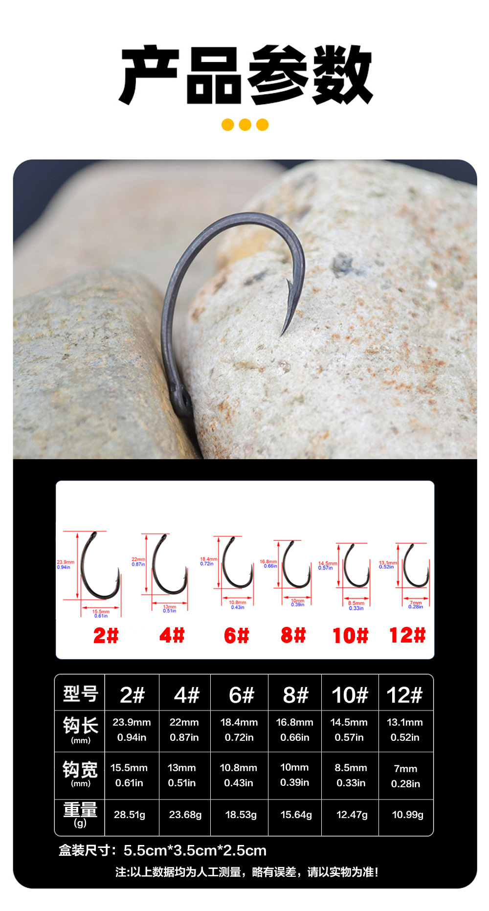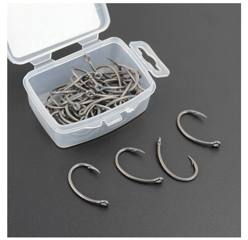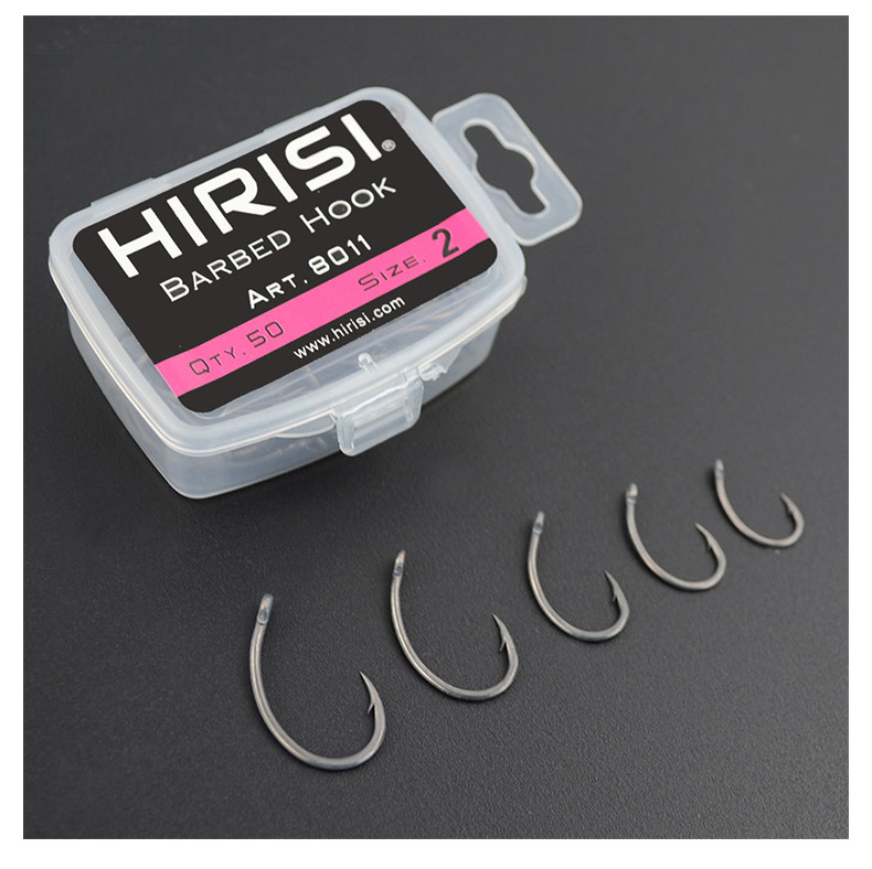 Hirisi 50 piezas en caja de teflón anzuelo de púas carpa anzuelo fábrica al por mayor artes de pesca