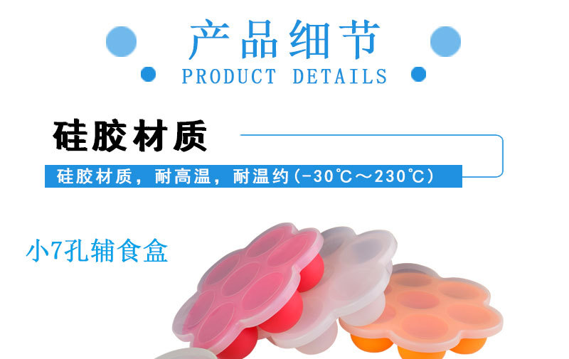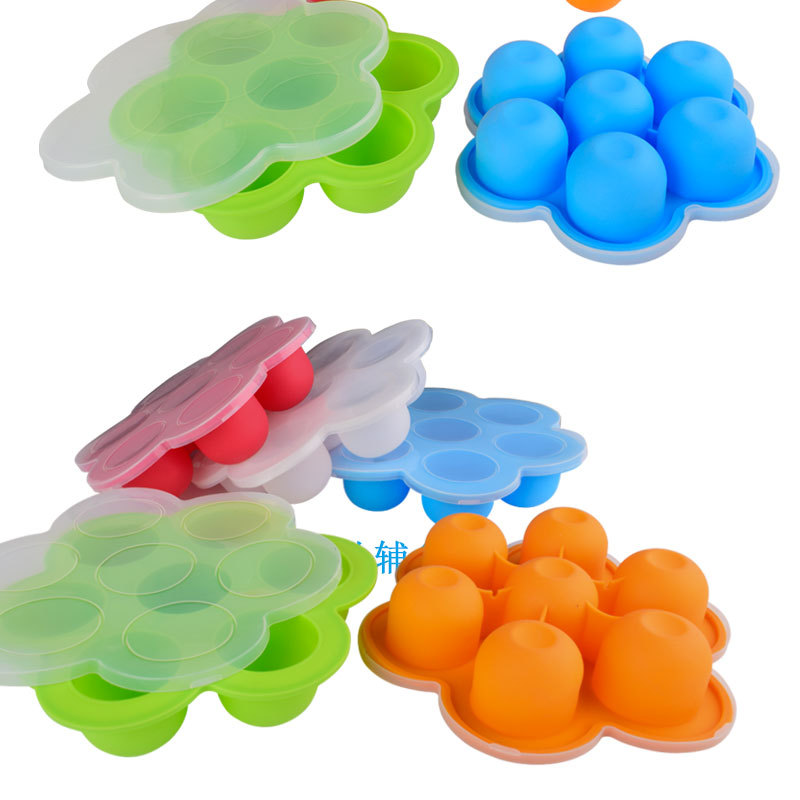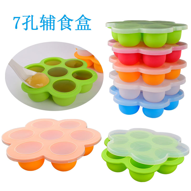 Gran 7 agujeros de silicona bebé almacenamiento con tapa suplemento alimenticio caja de hielo bandeja molde silicona snack congelado caja de almacenamiento