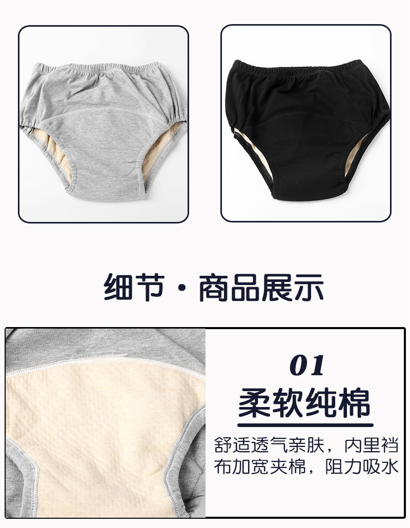 Ropa interior a prueba de orina para adultos Algodón puro para hombres y mujeres Cama transpirable a prueba de humedad Suministro directo de fábrica Cuidado de incontinencia para ancianos Calzoncillos lavables