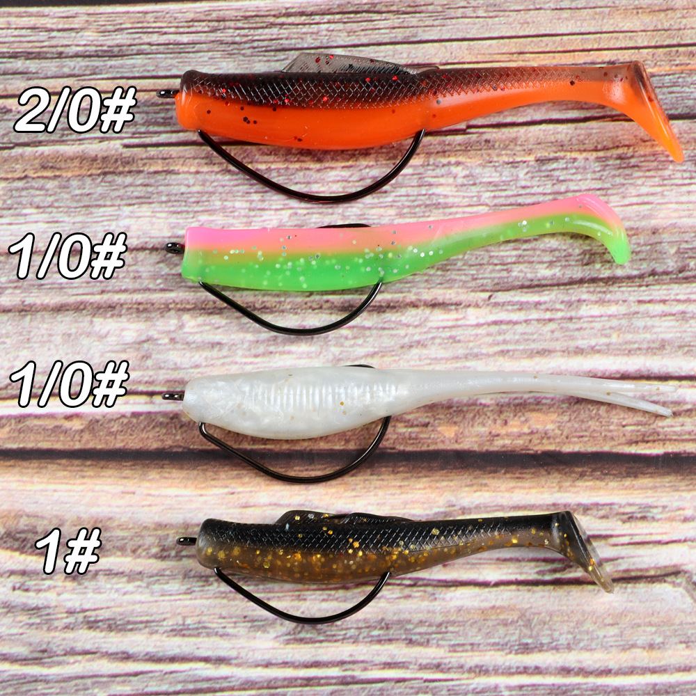 Zman SILENCIADOR Mar Pesca Texas grupo de pesca de mango largo gancho de manivela Gancho de manivela TPR suave cebo reforzado gancho de canal de sangre
