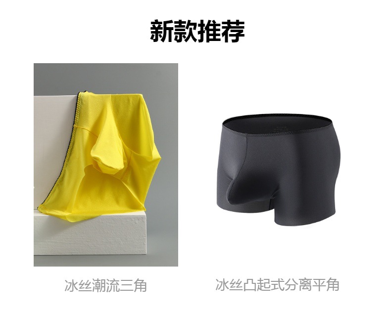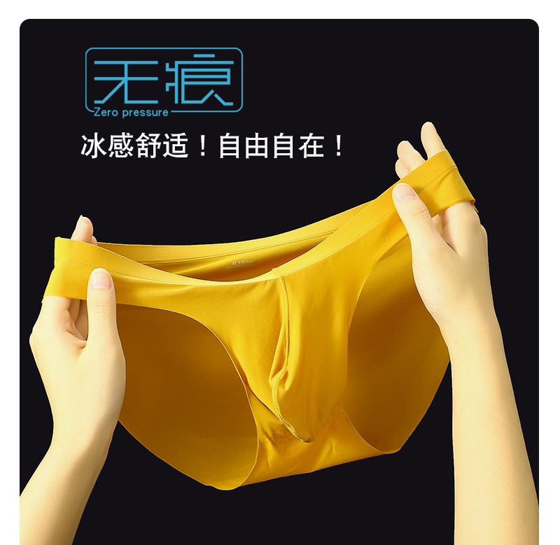 Primavera y verano nueva ropa interior sin costuras de seda de hielo calzoncillos para hombres pistola convexa separación de huevos secado rápido moda juvenil pantalones cortos de color sólido