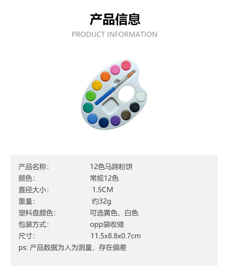 Pintura de acuarela 12 colores herradura polvo sólido pastel pintura al por mayor traje de pintura bosquejo