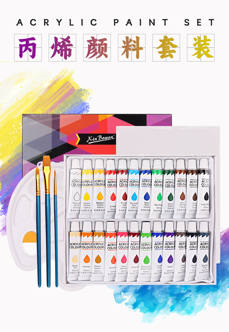 Amazon arte cepillo 30 unidades traje de los niños DIY pintura pared pintura 24 colores acrílico paleta cepillo