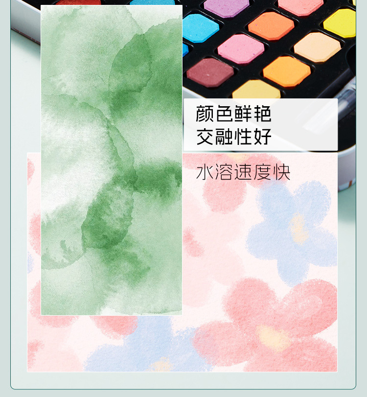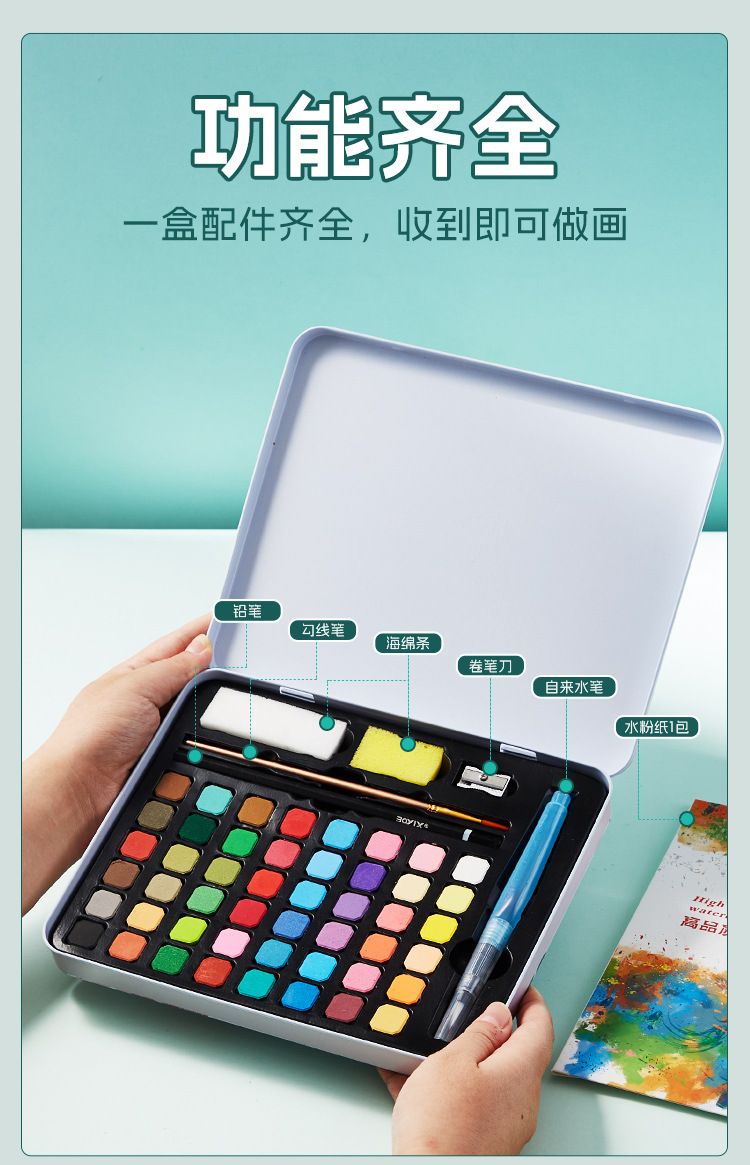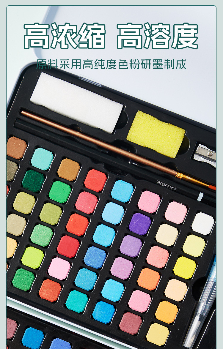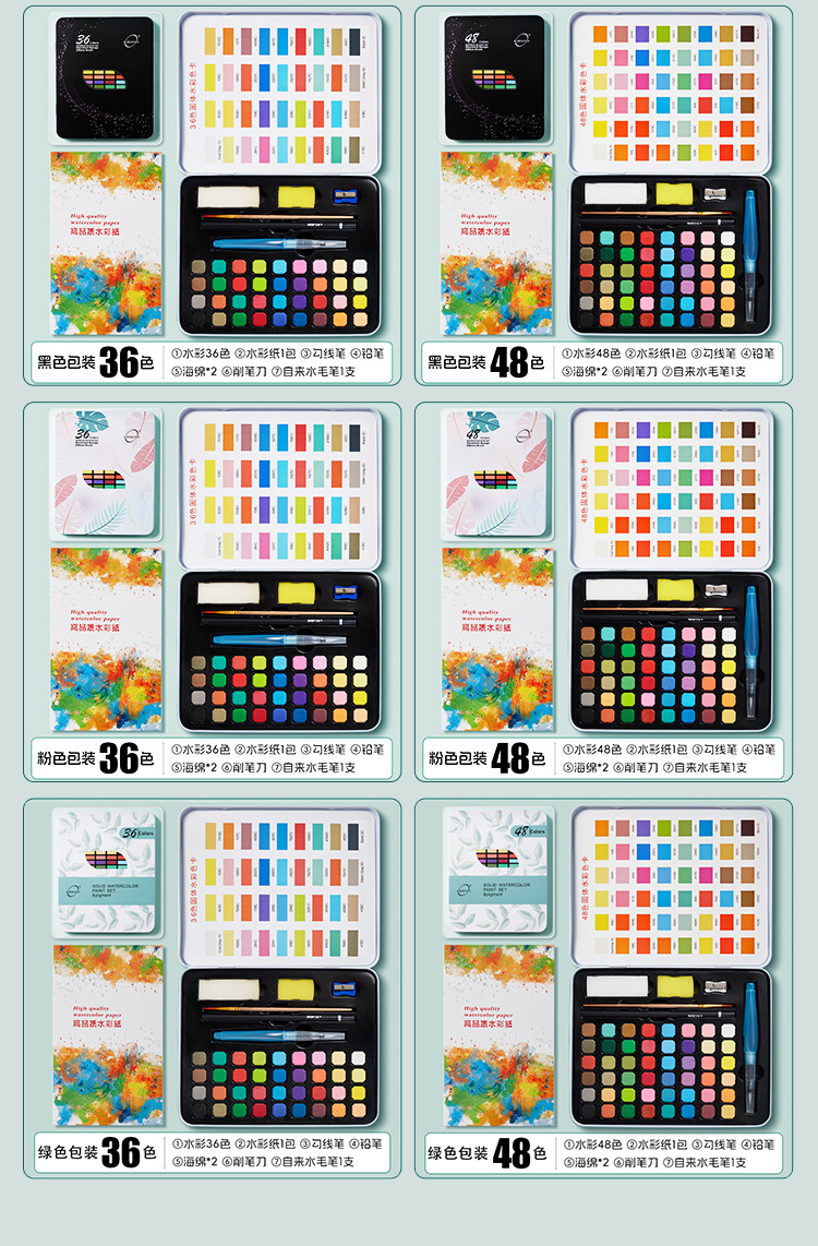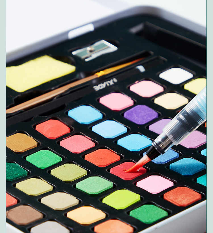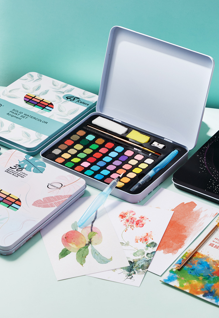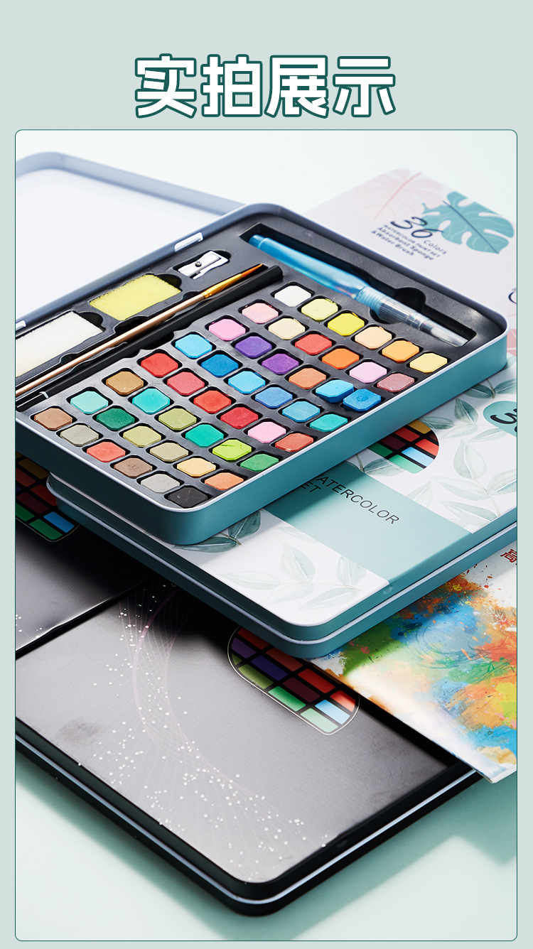 Cross-border pintura de acuarela sólida caja de hierro traje 36 color soluble en agua concentrado floreciente pintura sólida 48 color fábrica al por mayor