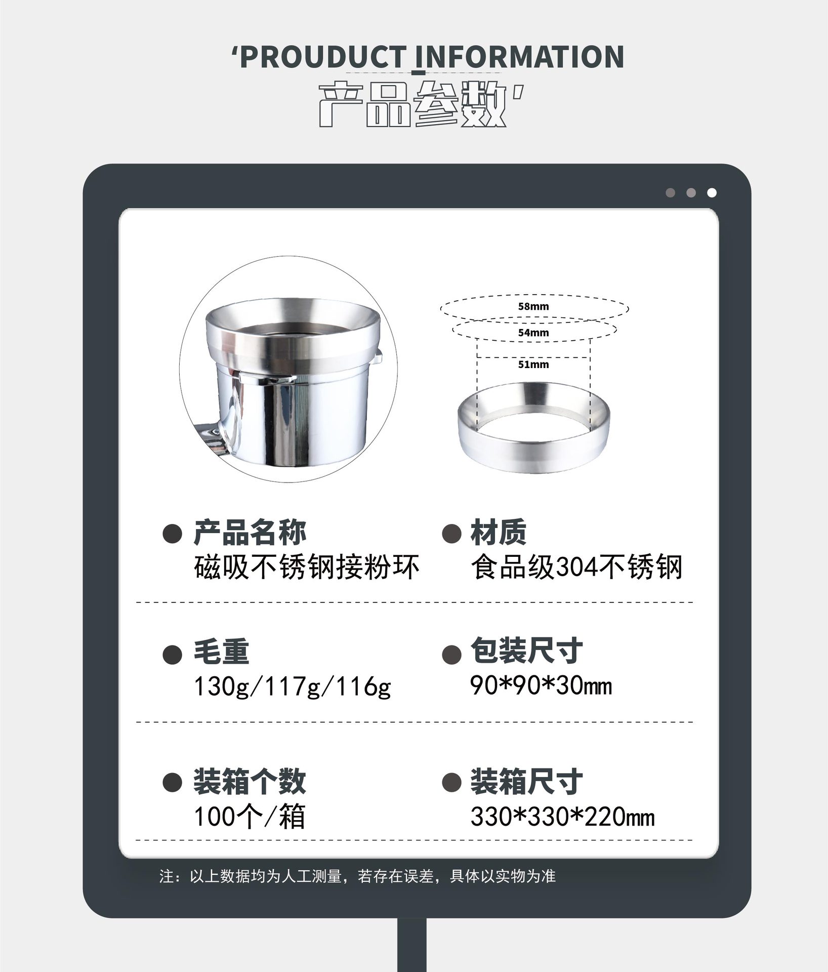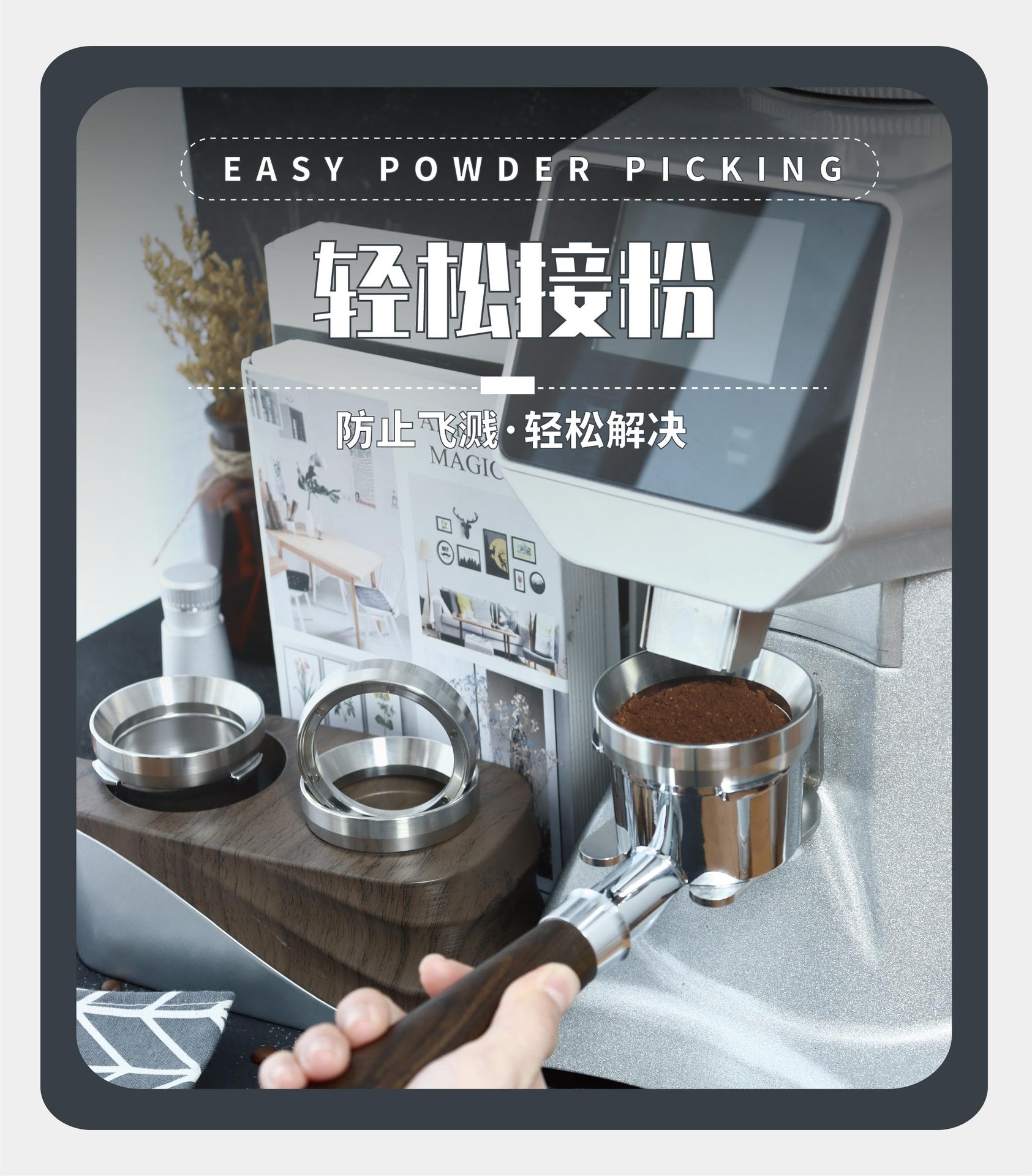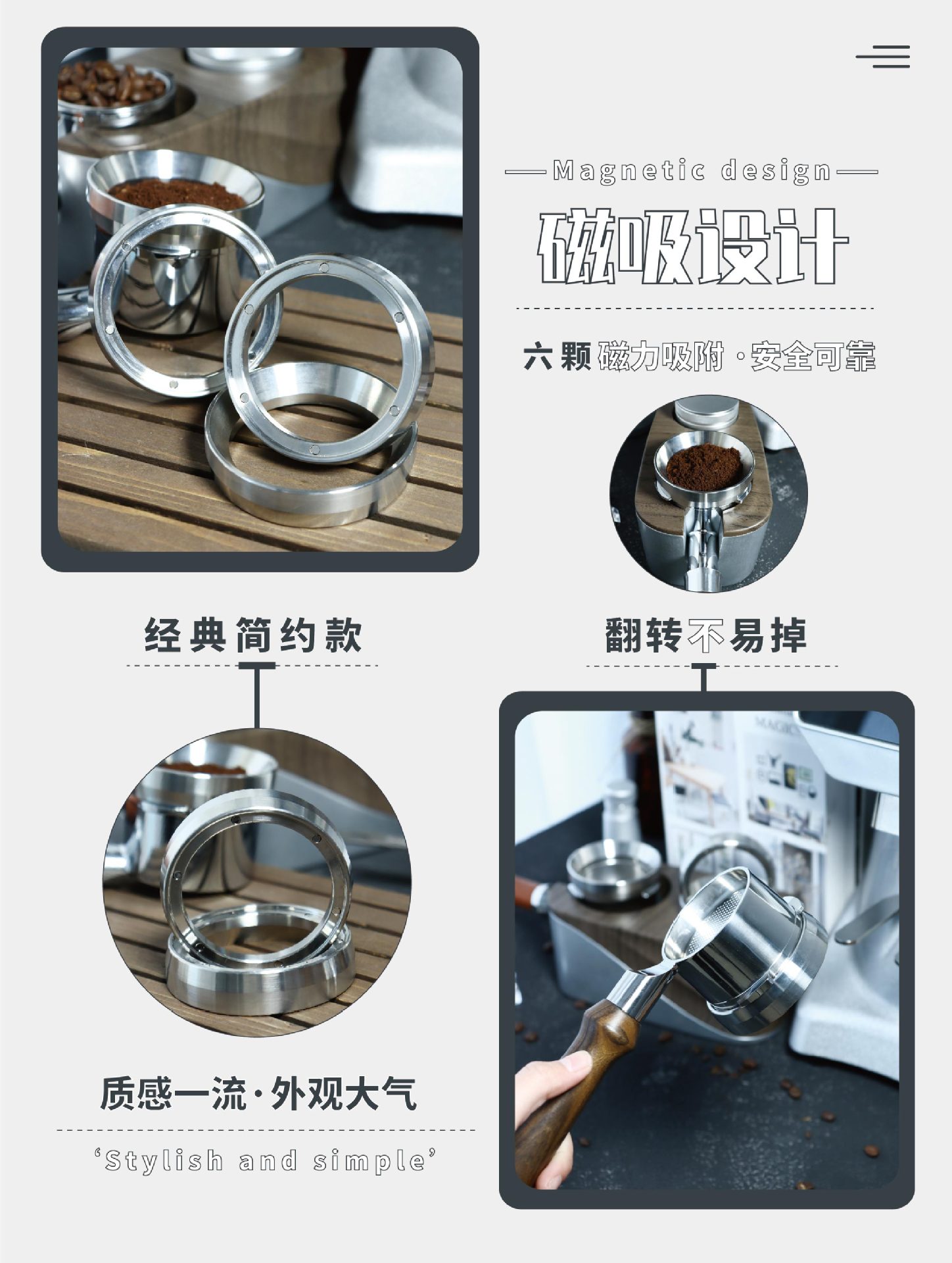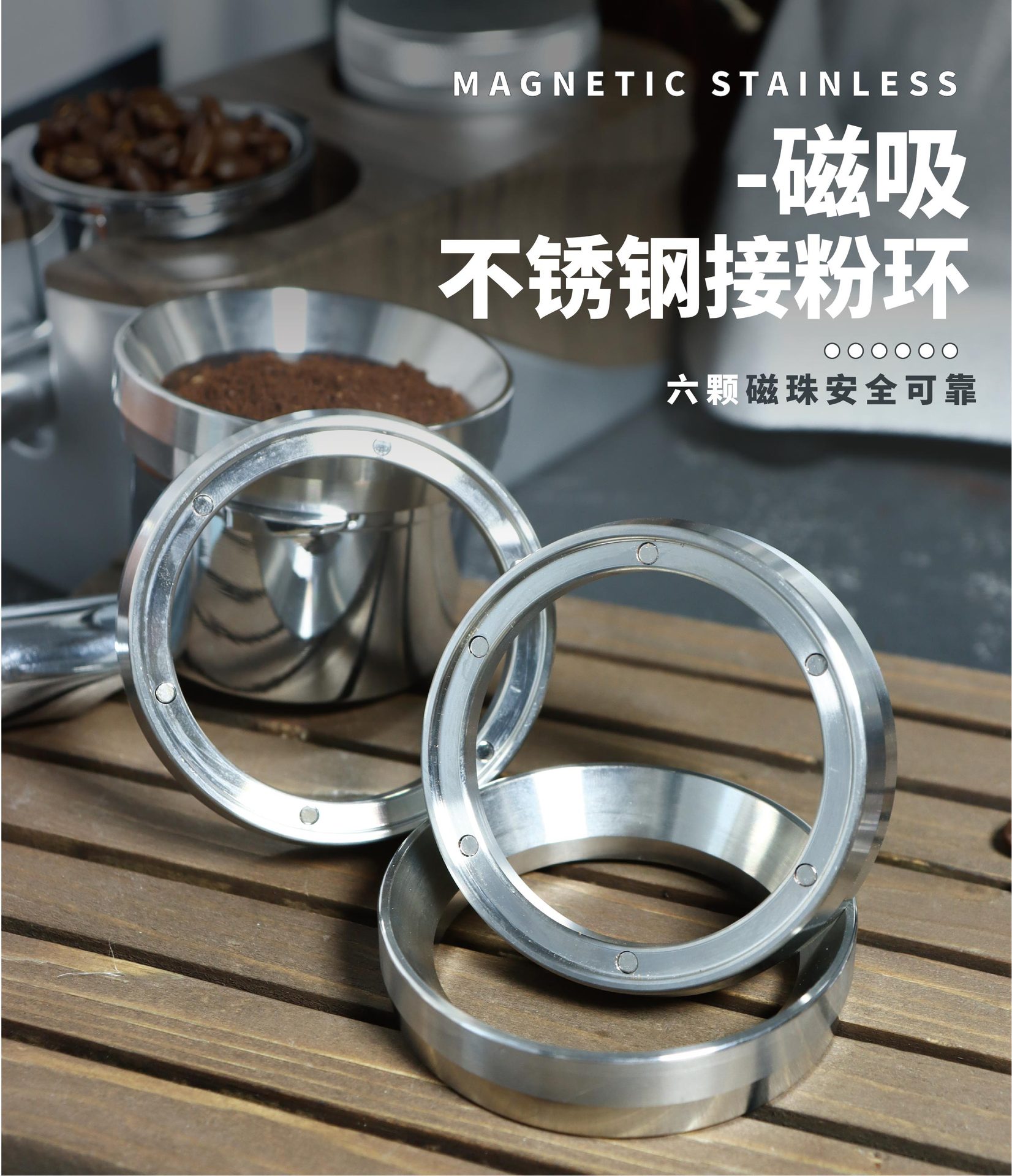 Mango de café de anillo cuantitativo de polvo anti-mosca magnético adecuado para Dispositivo de recogida de polvo de café de acero inoxidable