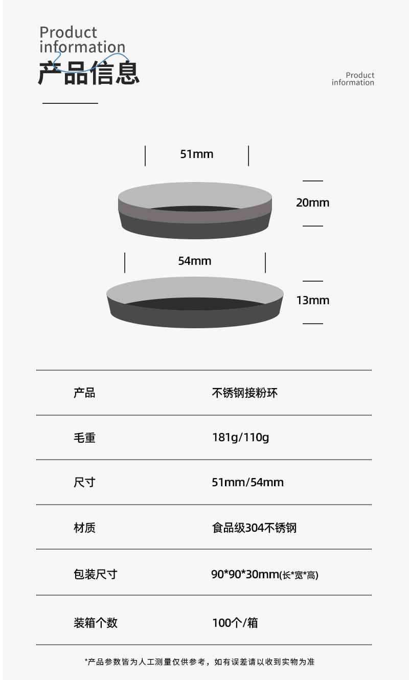 EspecificacionesAnillo de polvo de acero inoxidable de 51mm,Anillo de polvo de acero inoxidable de 54mm (delgado)