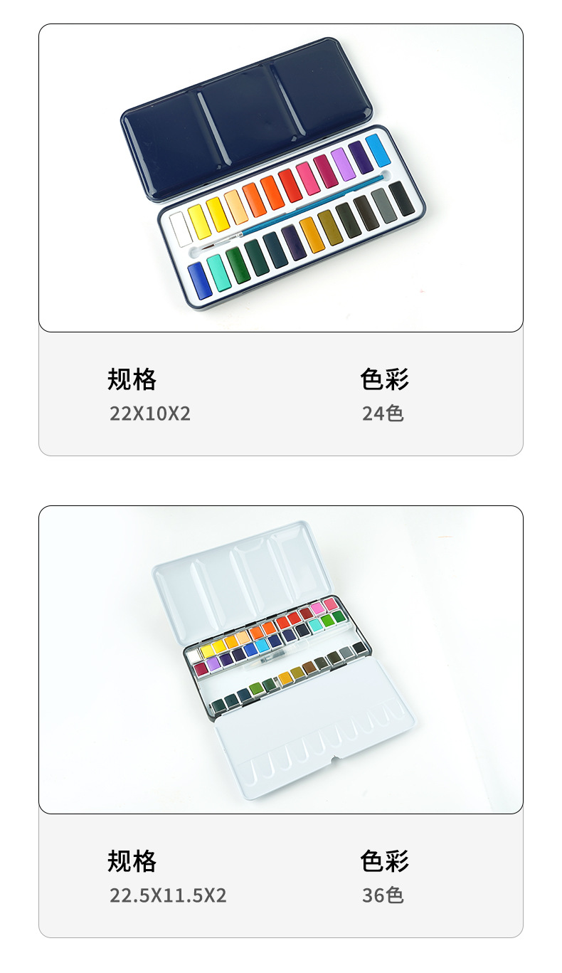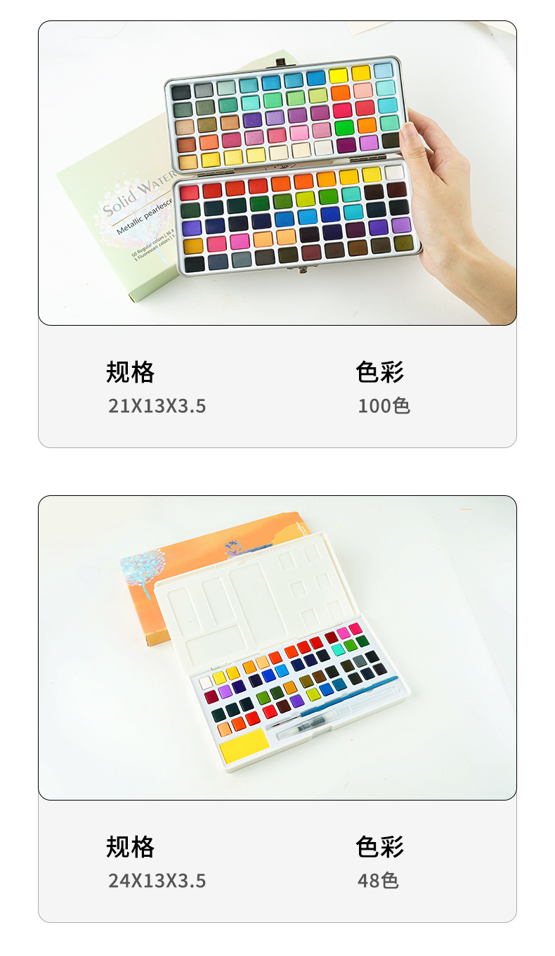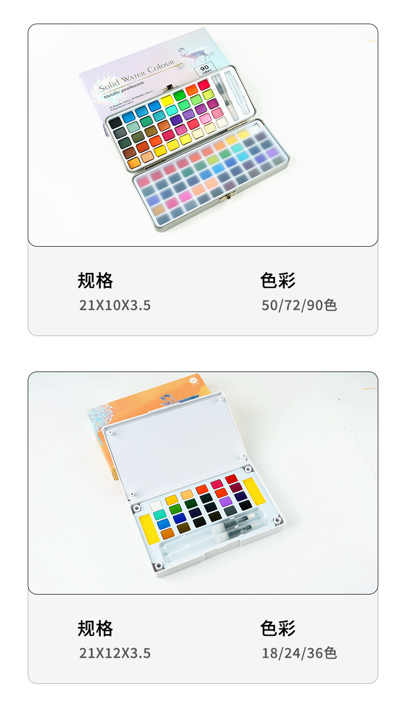 Venta al por mayor 50/72/90/100 color portátil sólido acuarela caja de hierro traje pintura arte pintura personalización transfronteriza
