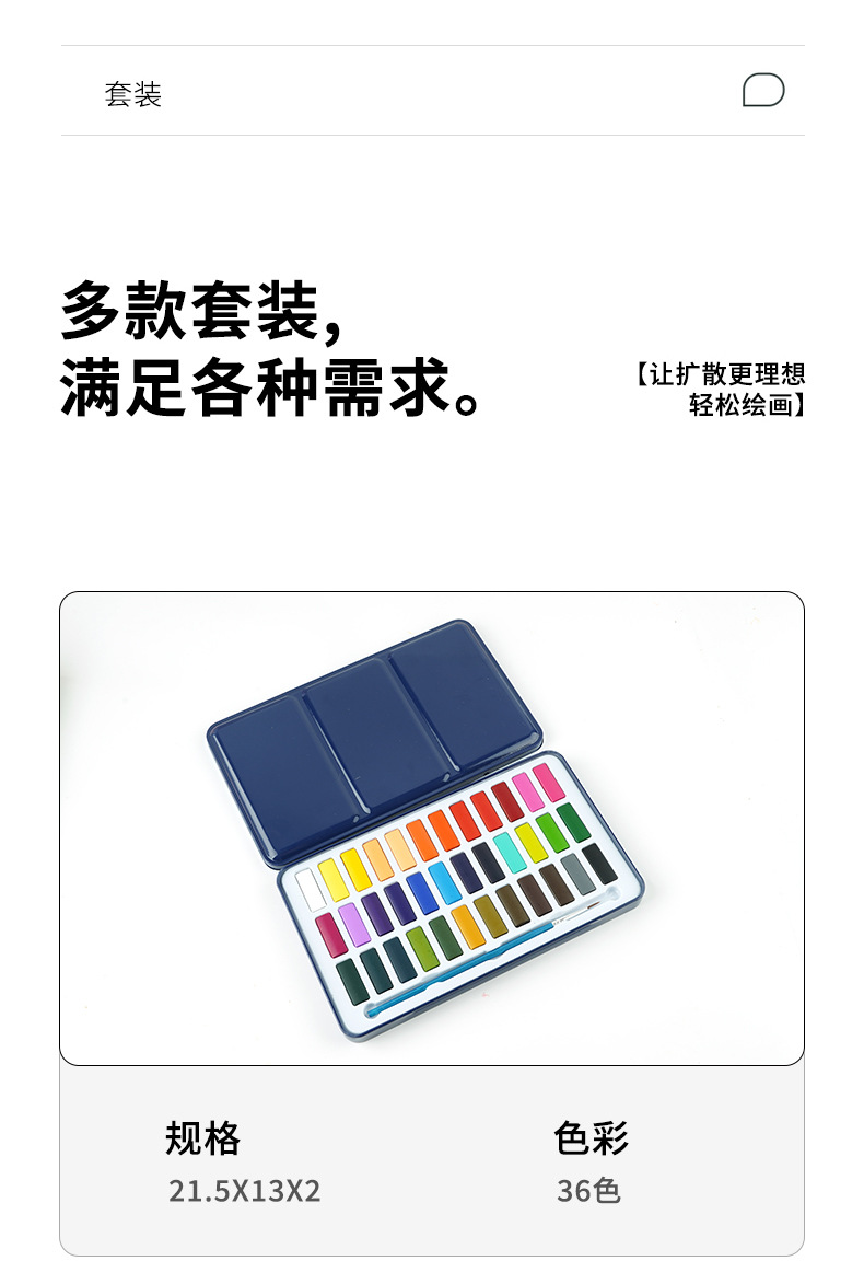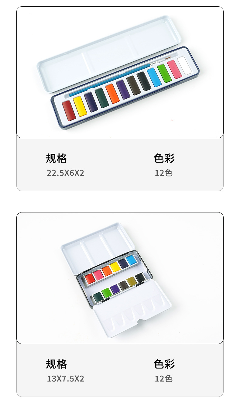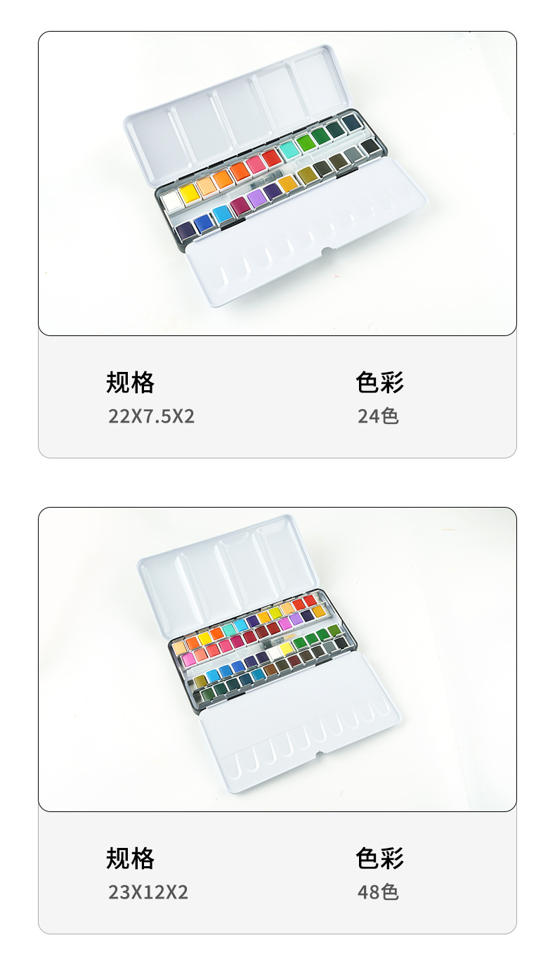 Venta al por mayor 50/72/90/100 color portátil sólido acuarela caja de hierro traje pintura arte pintura personalización transfronteriza