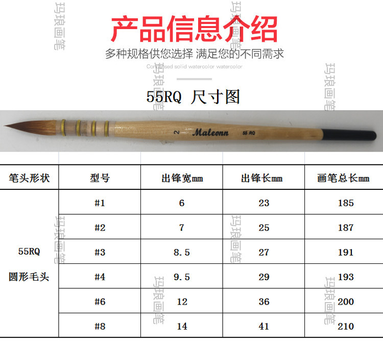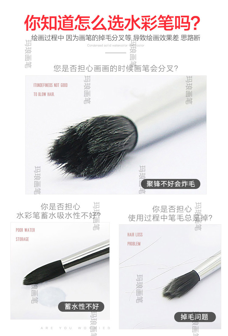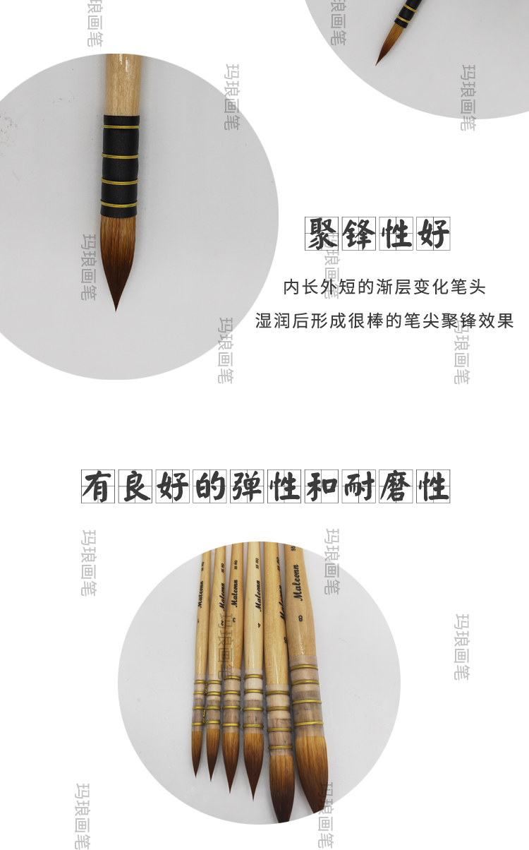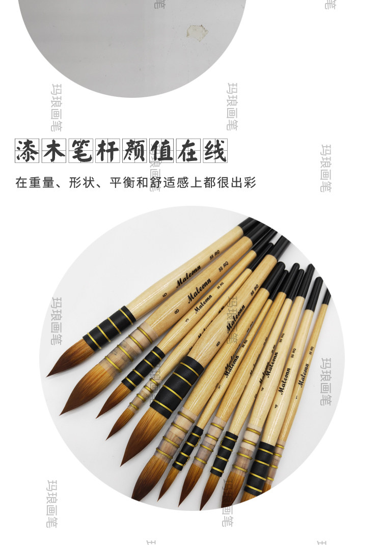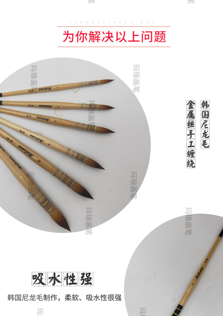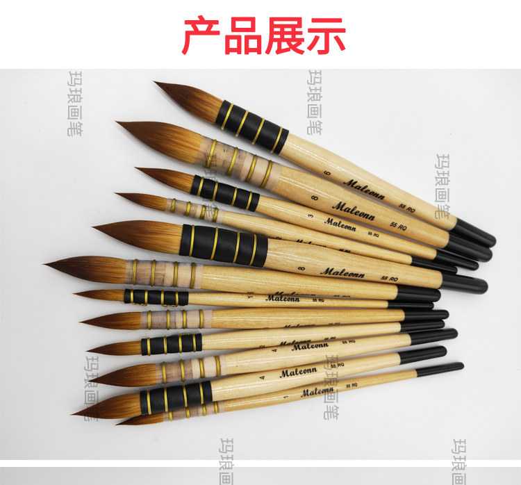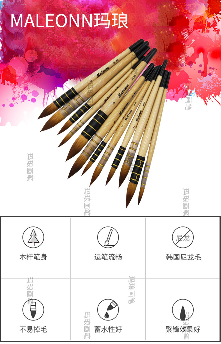 MALEONN conjunto de pinceles de acuarela principiante pintado a mano cabeza redonda nylon negro blanco amarillo cepillo de grasa cepillo fregona