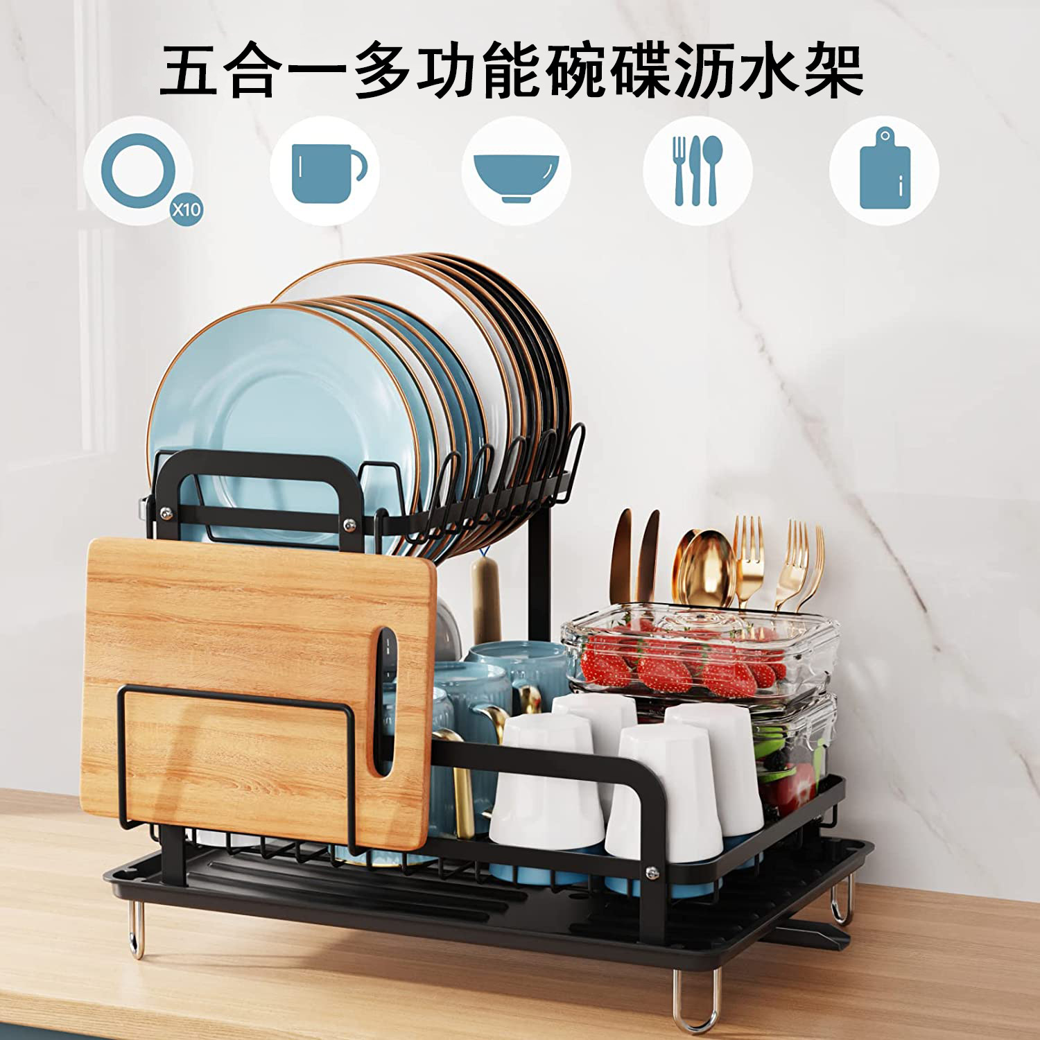2203 cocina en casa estante de drenaje de doble capa estante de tabla de cortar multifuncional nueva bandeja de agua desmontable moderno simple tazón y plato