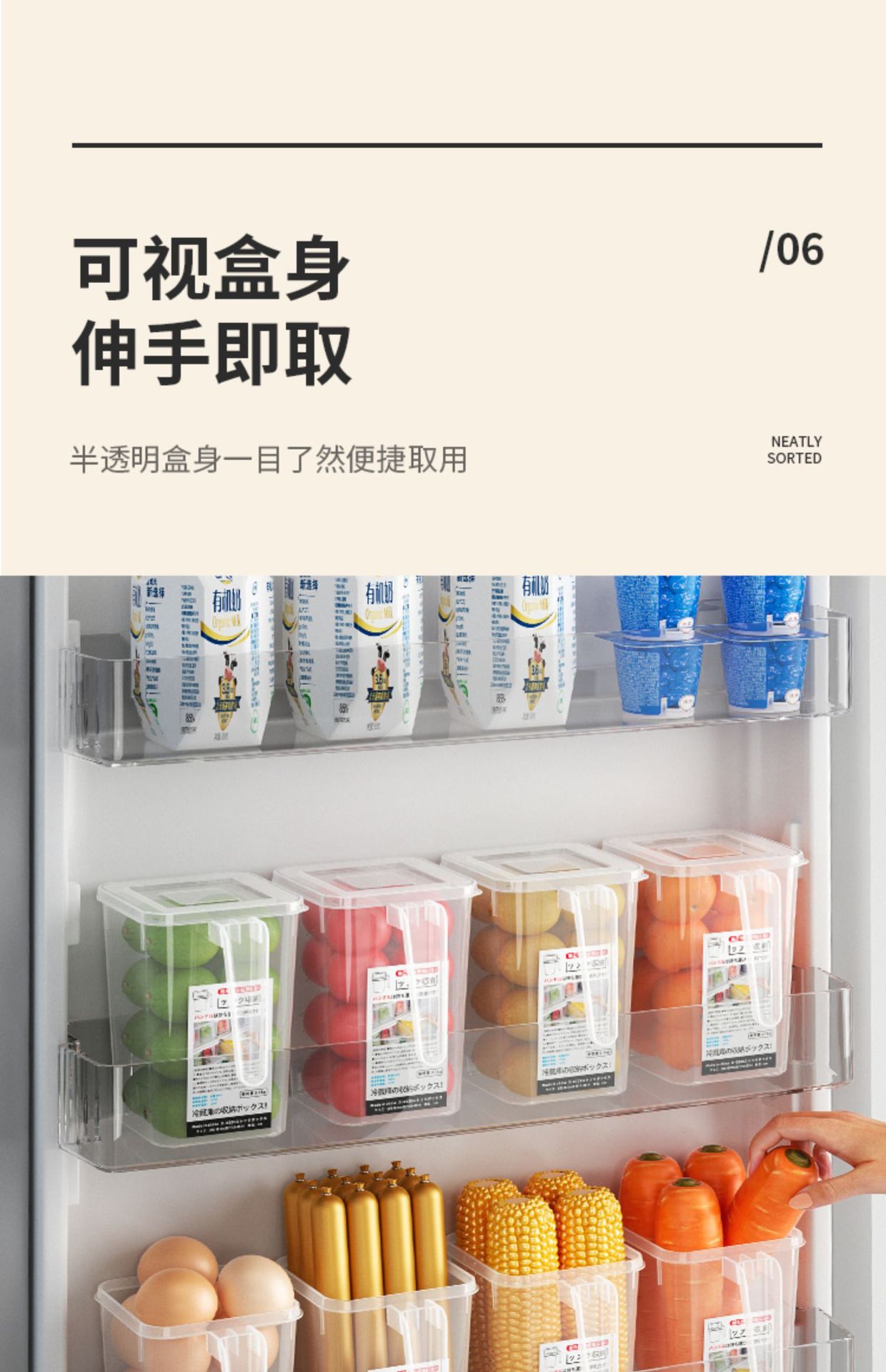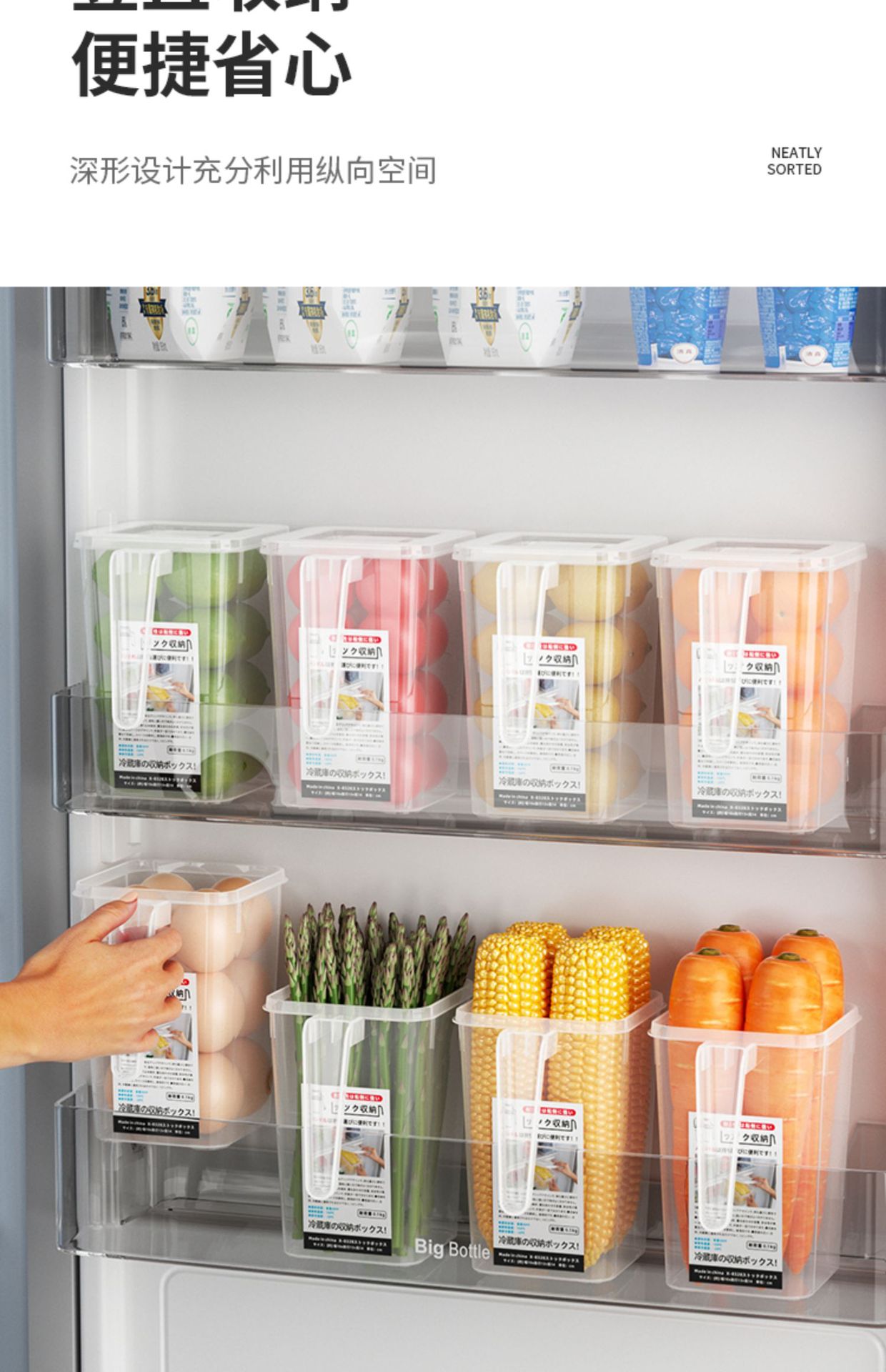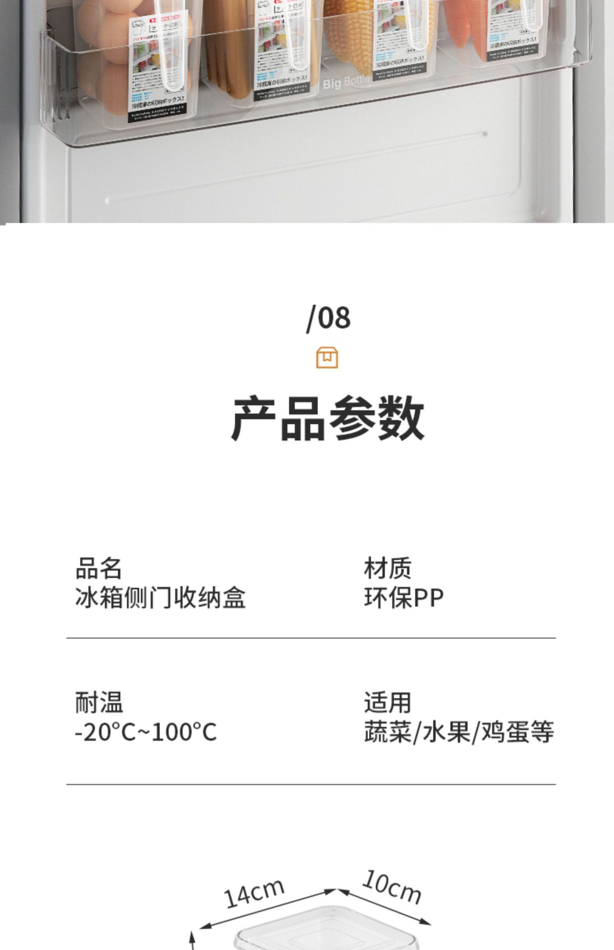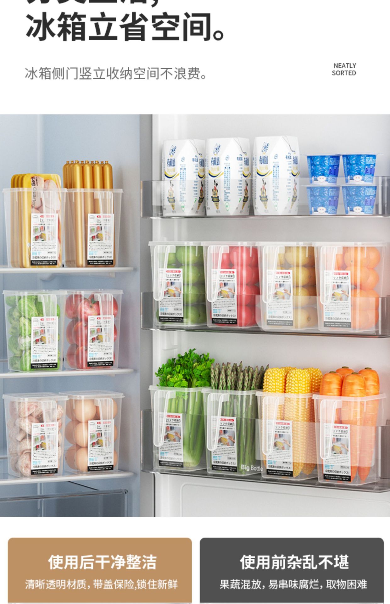 Caja de almacenamiento interior de la puerta del refrigerador Cocina Comida comida vegetal fruta con tapa caja de organización caja de almacenamiento con mango