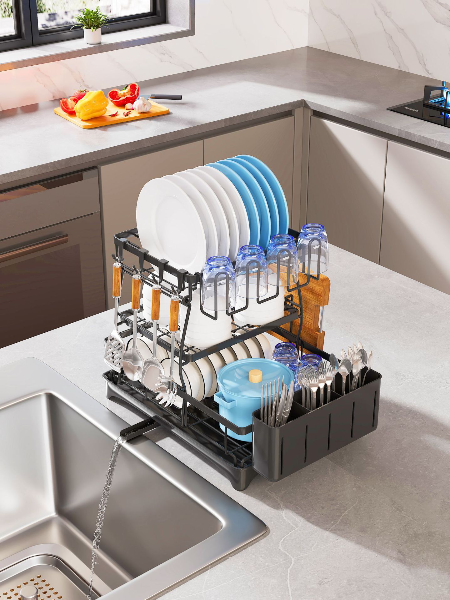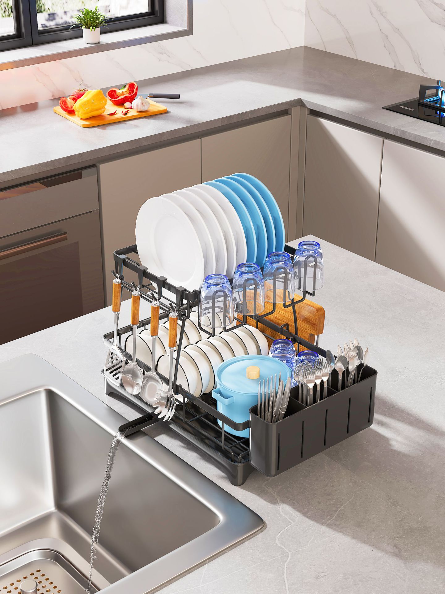 Plato de drenaje estante hogar fregadero extraíble tazón lateral palillos cuchillo tenedor Tazón plato vajilla mesa de almacenamiento estante de almacenamiento rack de almacenamiento