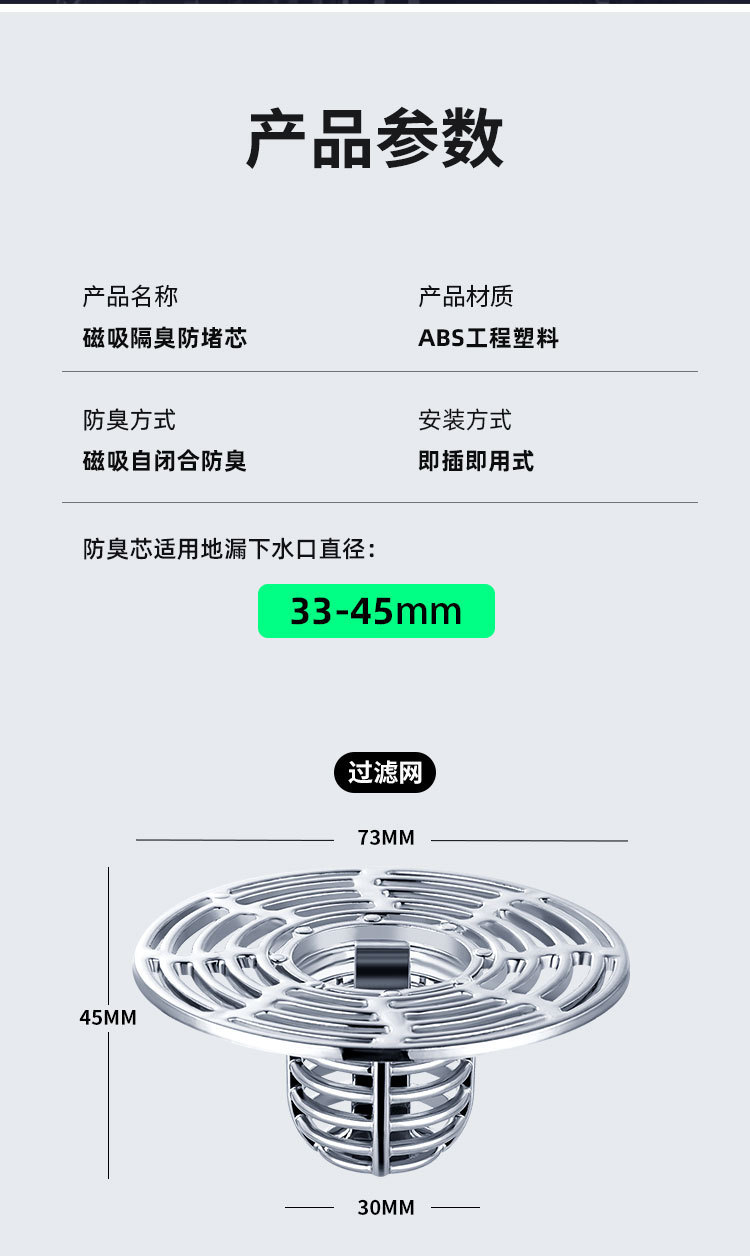 Desagüe en el piso desodorante dispositivo desodorante de alcantarillado artefacto cubierta de sellado enchufe núcleo universal a prueba de insectos filtro neto