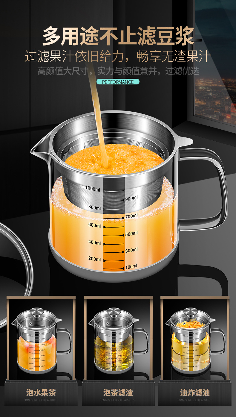 Filtro de leche de soja artefacto hogar cocina jugo filtro olla gran capacidad con filtro neto olla de té olla de jugo de vidrio