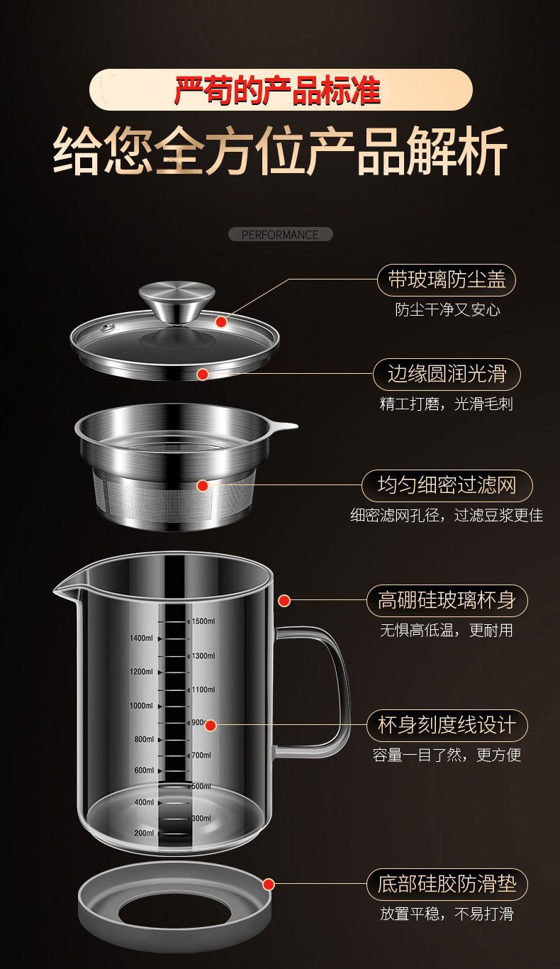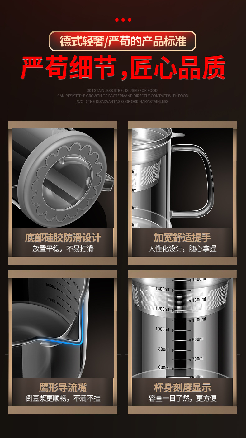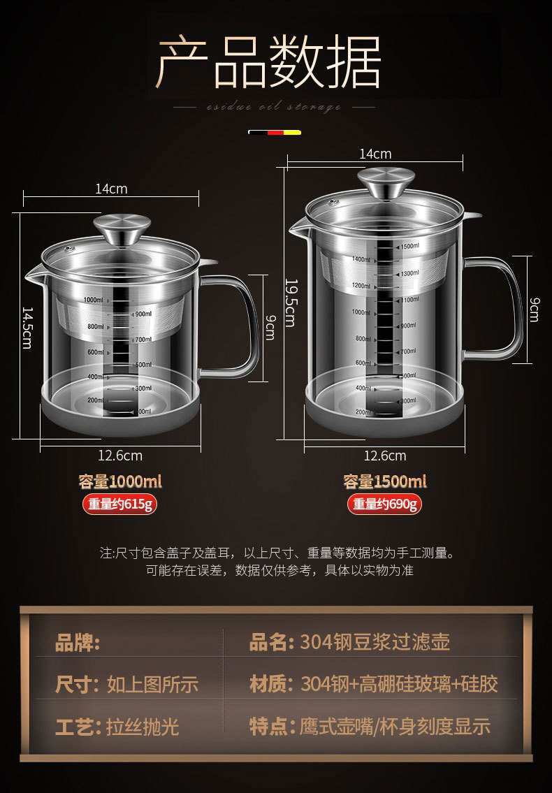 | Capacidad | Tanque de filtro de leche de soja con alto contenido de borosilicato de acero 304 [1L],Olla de filtro de leche de soja con alto contenido de borosilicato de acero 304 [1.2L],Olla de filtro de leche de soja con alto contenido de borosilicato de acero 304 [1.5L] |