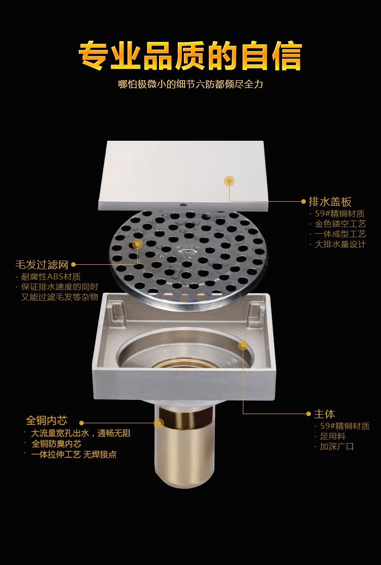 Desagüe de piso invisible de cobre Villa Desagüe de piso de cobre buceo desodorante de agua profunda mismo piso desagüe ventas de la fábrica