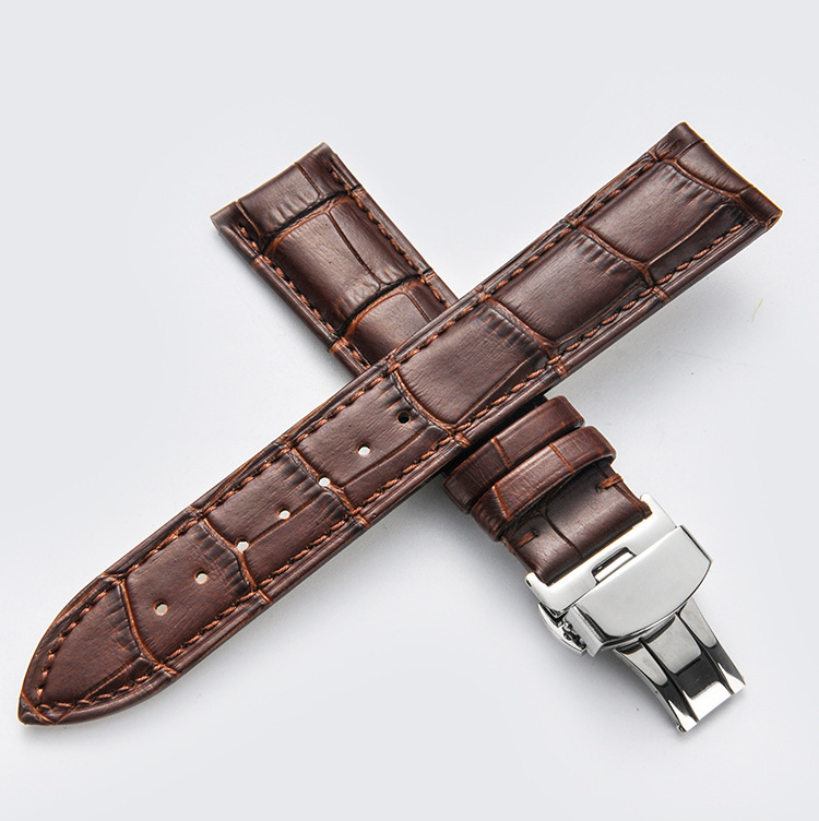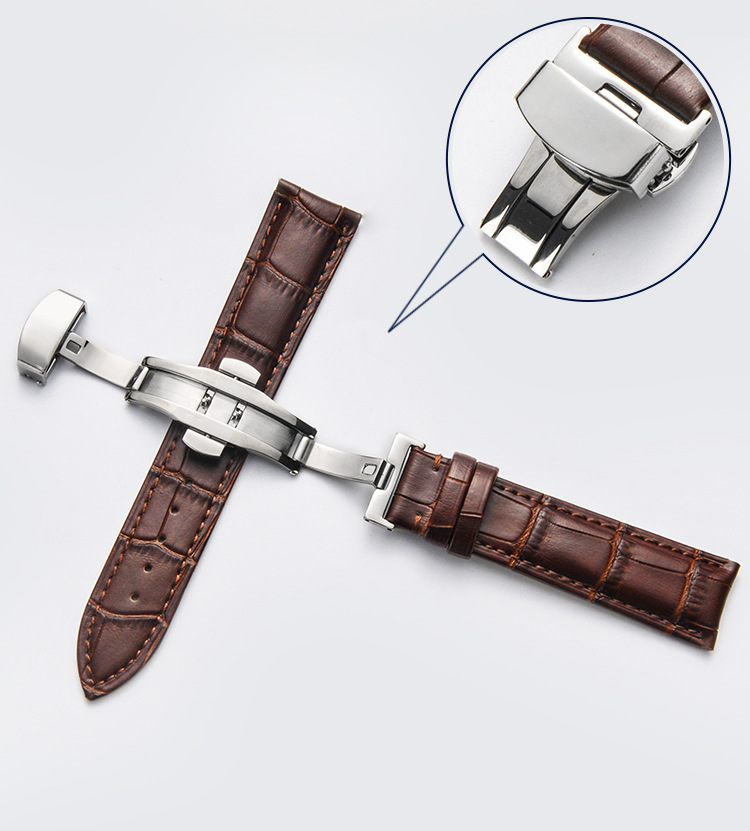 Hebilla de mariposa de doble presión Correa marrón oscuro (hebilla de plata) + caja de madera