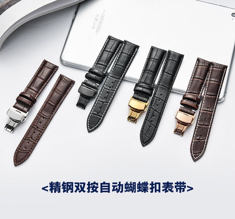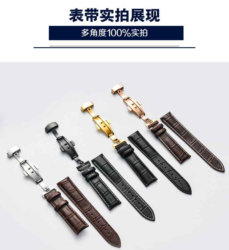 Venta al por mayor correa de reloj de cuero genuino par correa de reloj doble prensa mariposa hebilla caja de madera a juego accesorios de reloj (Grande)