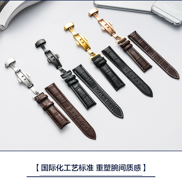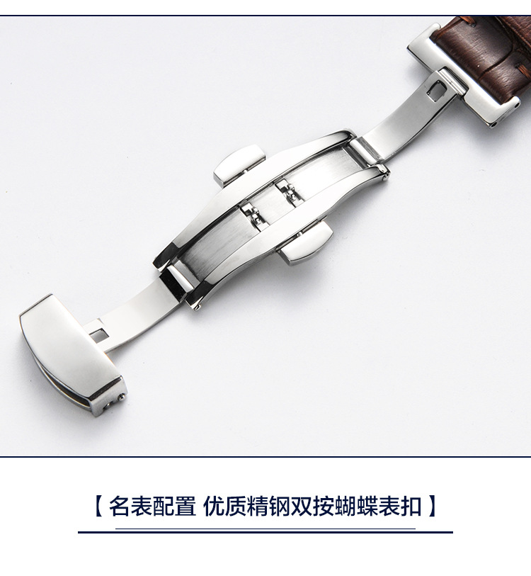 Hebilla de mariposa de doble presión correa de línea blanca marrón oscuro (hebilla de oro de lujo local) + caja de madera