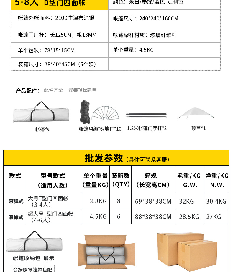 | Tamaño de la tienda desplegada | 210*210*140/240*240*160 |