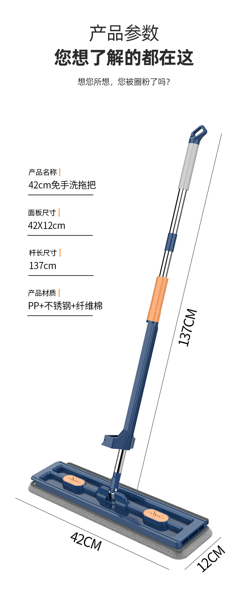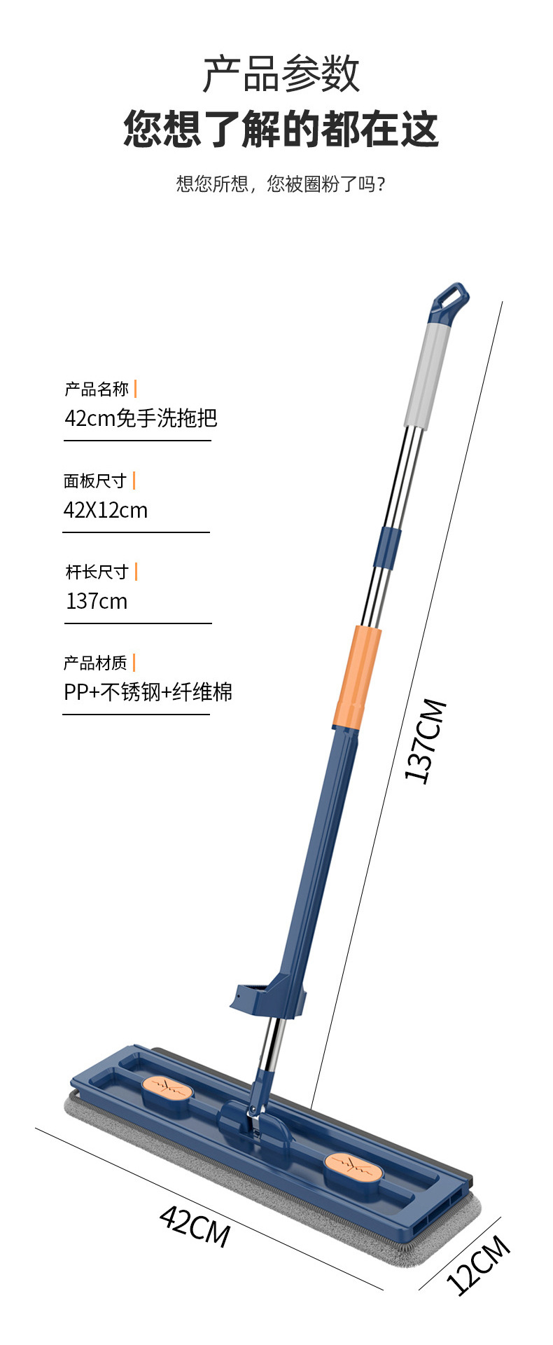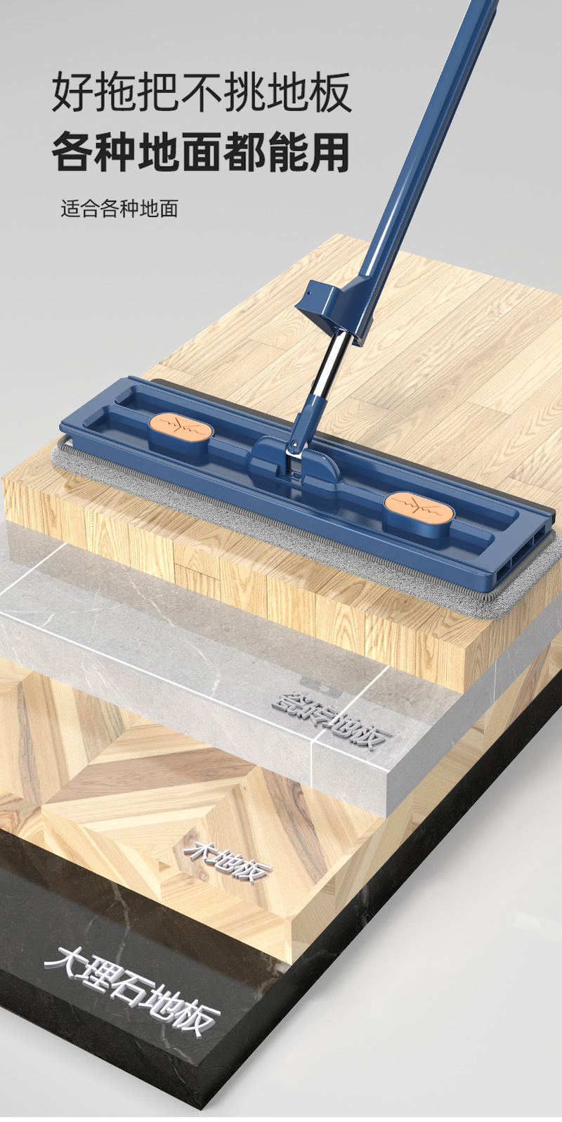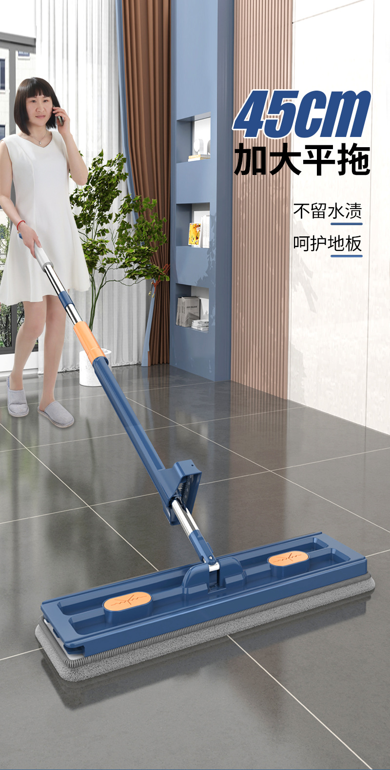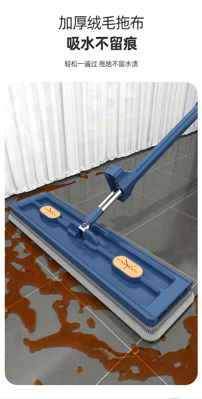 Envío gratis 2025 nueva mopa plana grande, lavado manos libres, mopa absorbente para el hogar, herramienta para limpiar pisos de madera con una sola pasada.