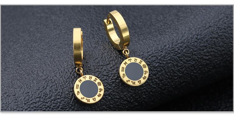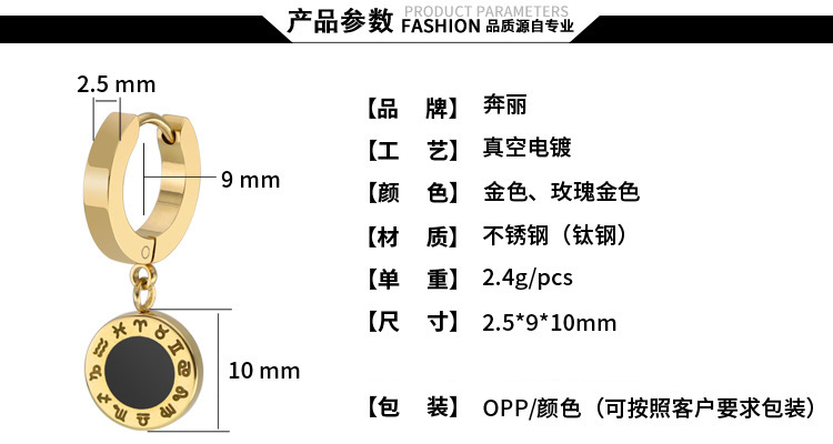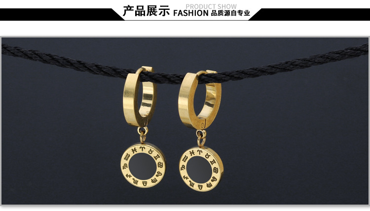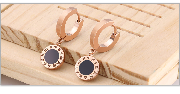 Europa y América personalidad simple moda constelación símbolo Luz de lujo de acero de titanio pendientes redondos pastel oído hebilla gota pendientes de aceite fábrica al por mayor