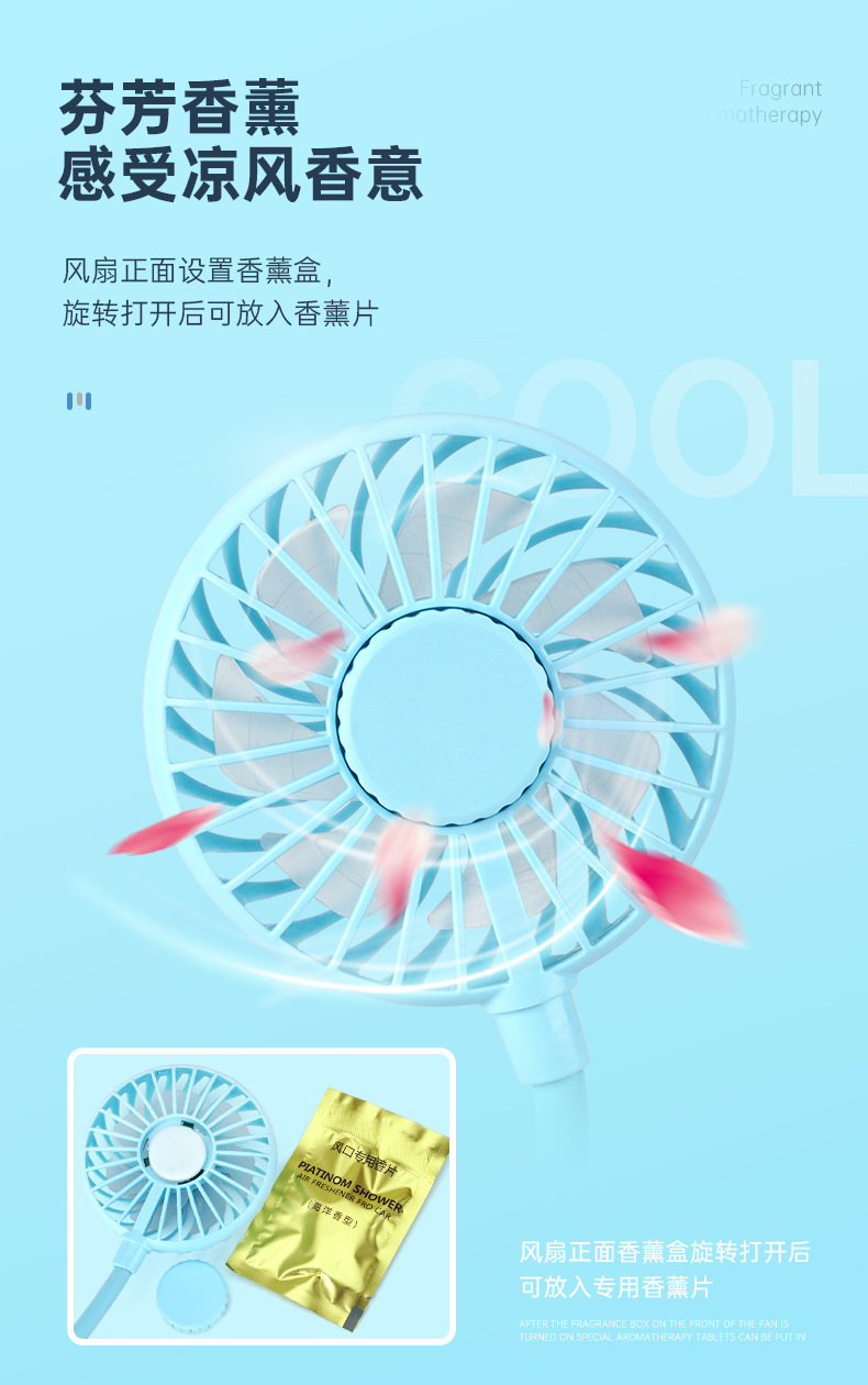 Clip de aromaterapia colorida usb pequeño ventilador