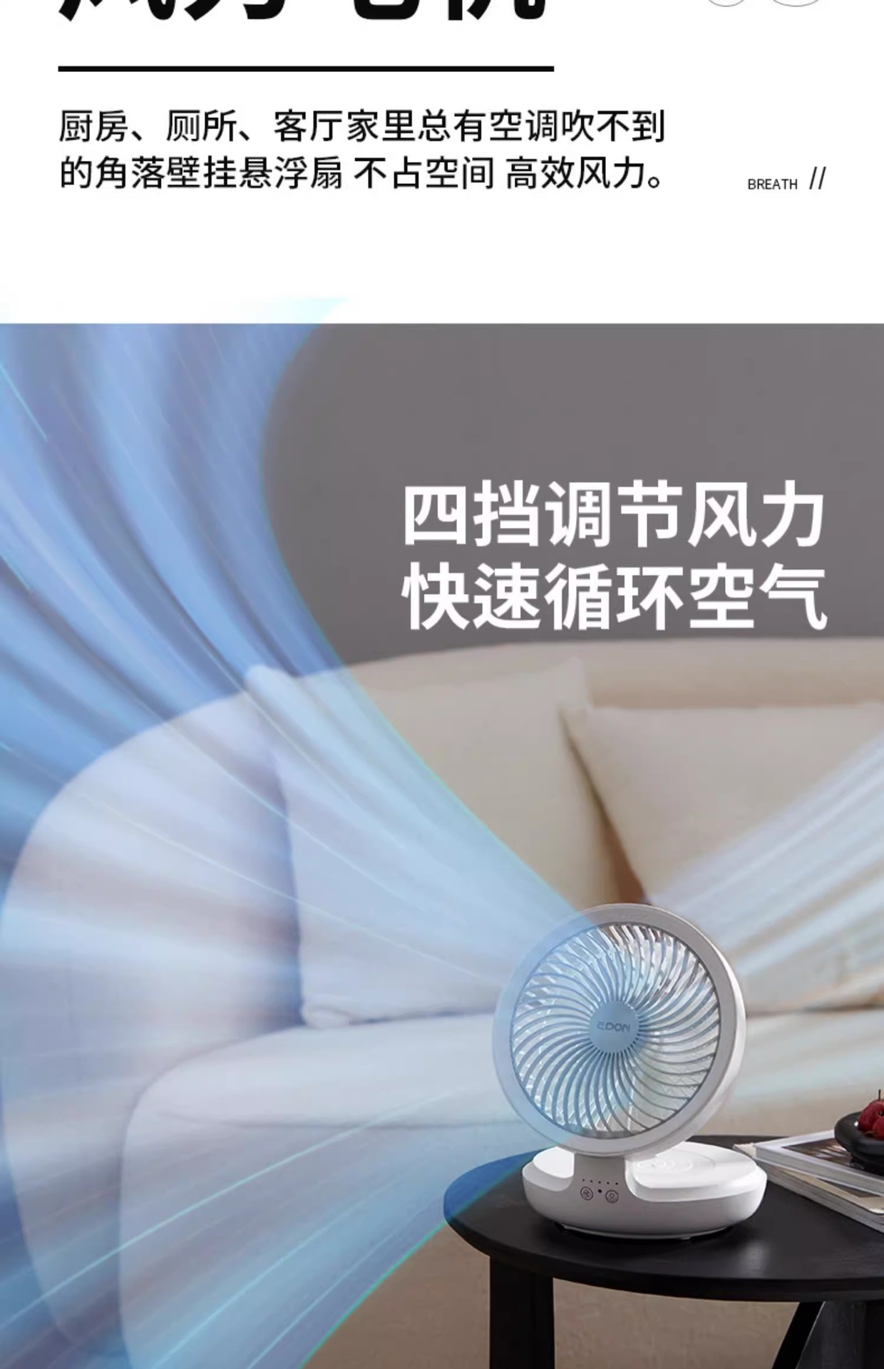 Edon aideng Suspensión de circulación de aire escritorio pequeño ventilador eléctrico escritorio Oficina Punch-libre pared colgando ventilador de la cocina