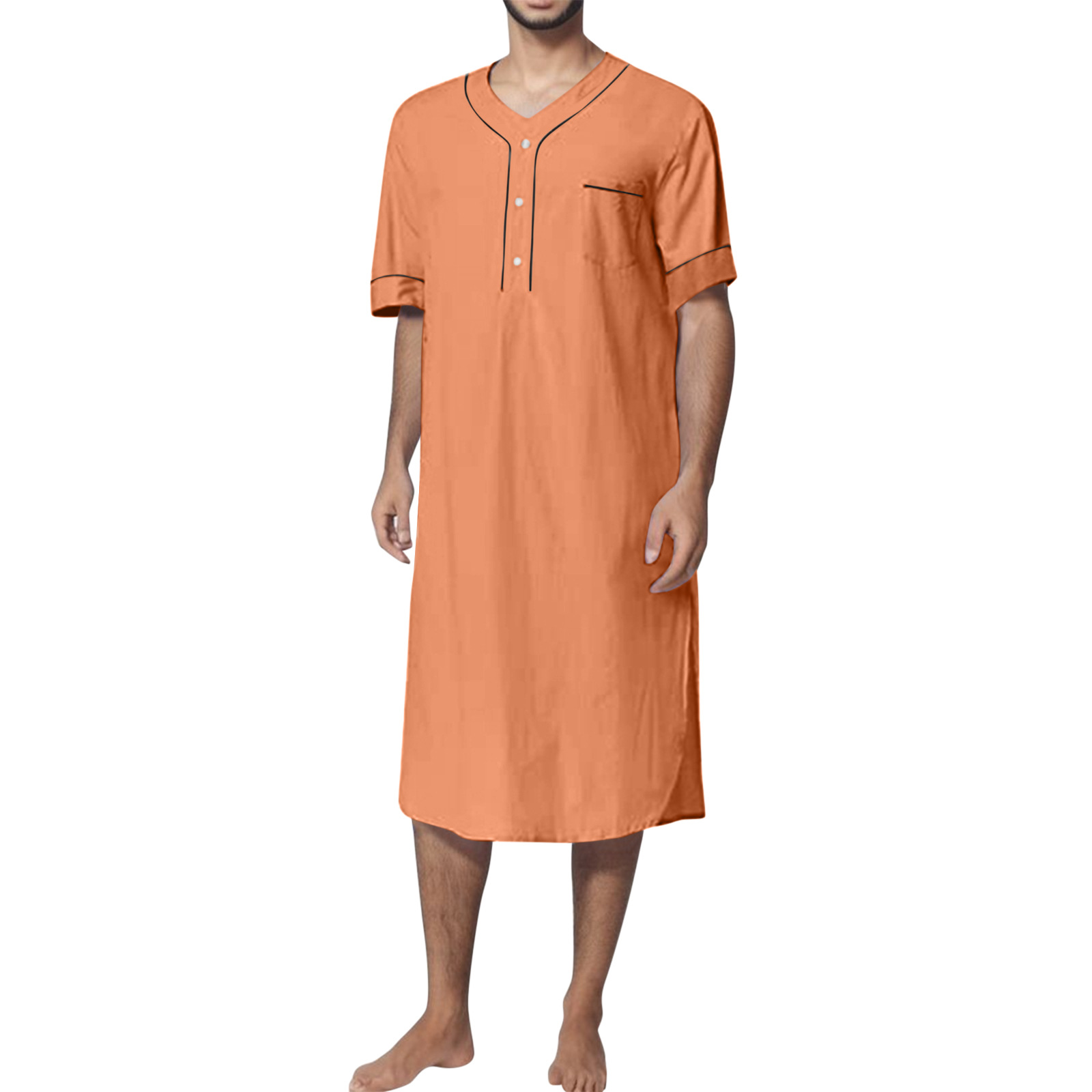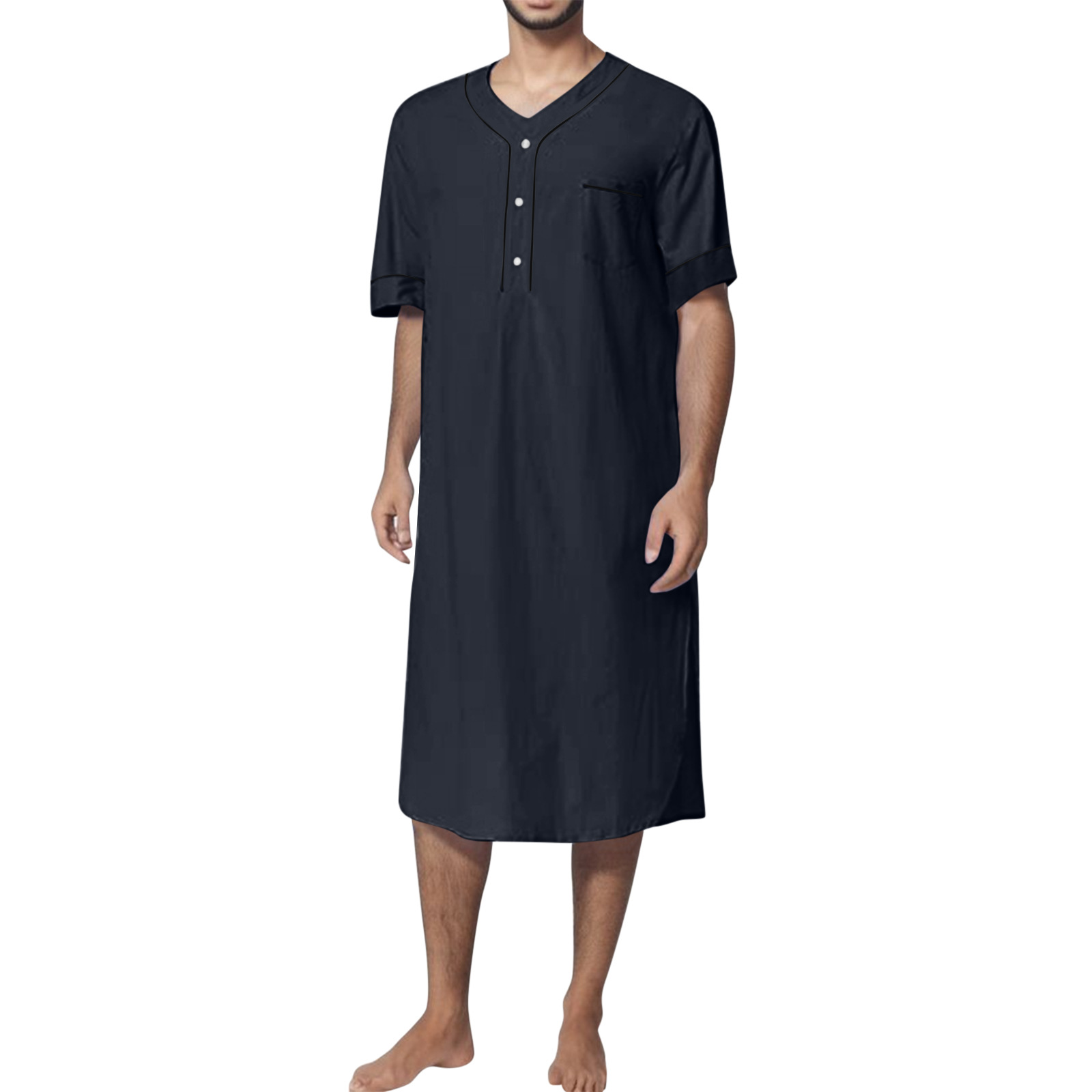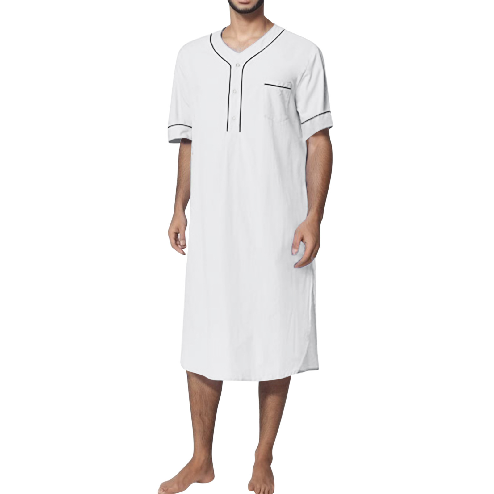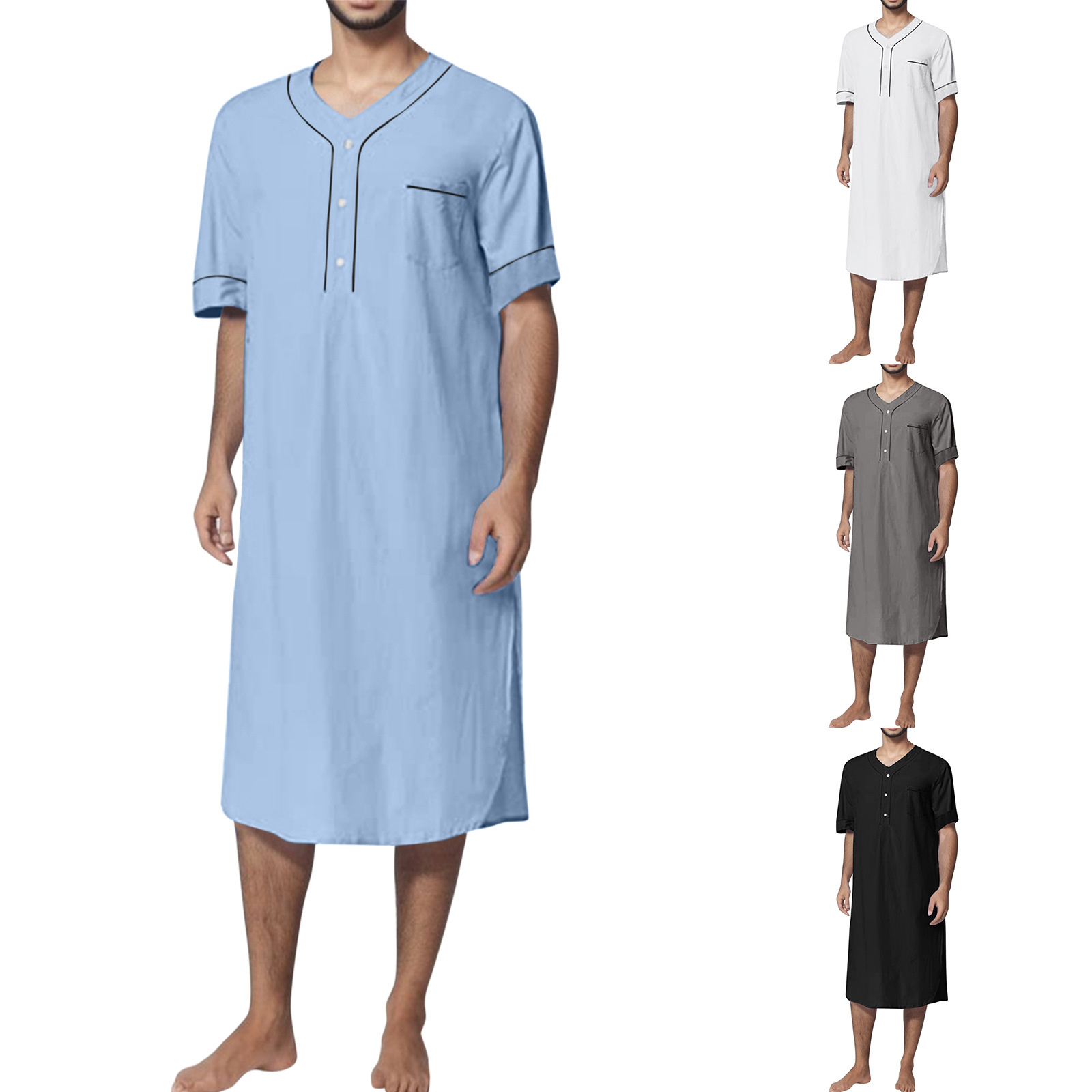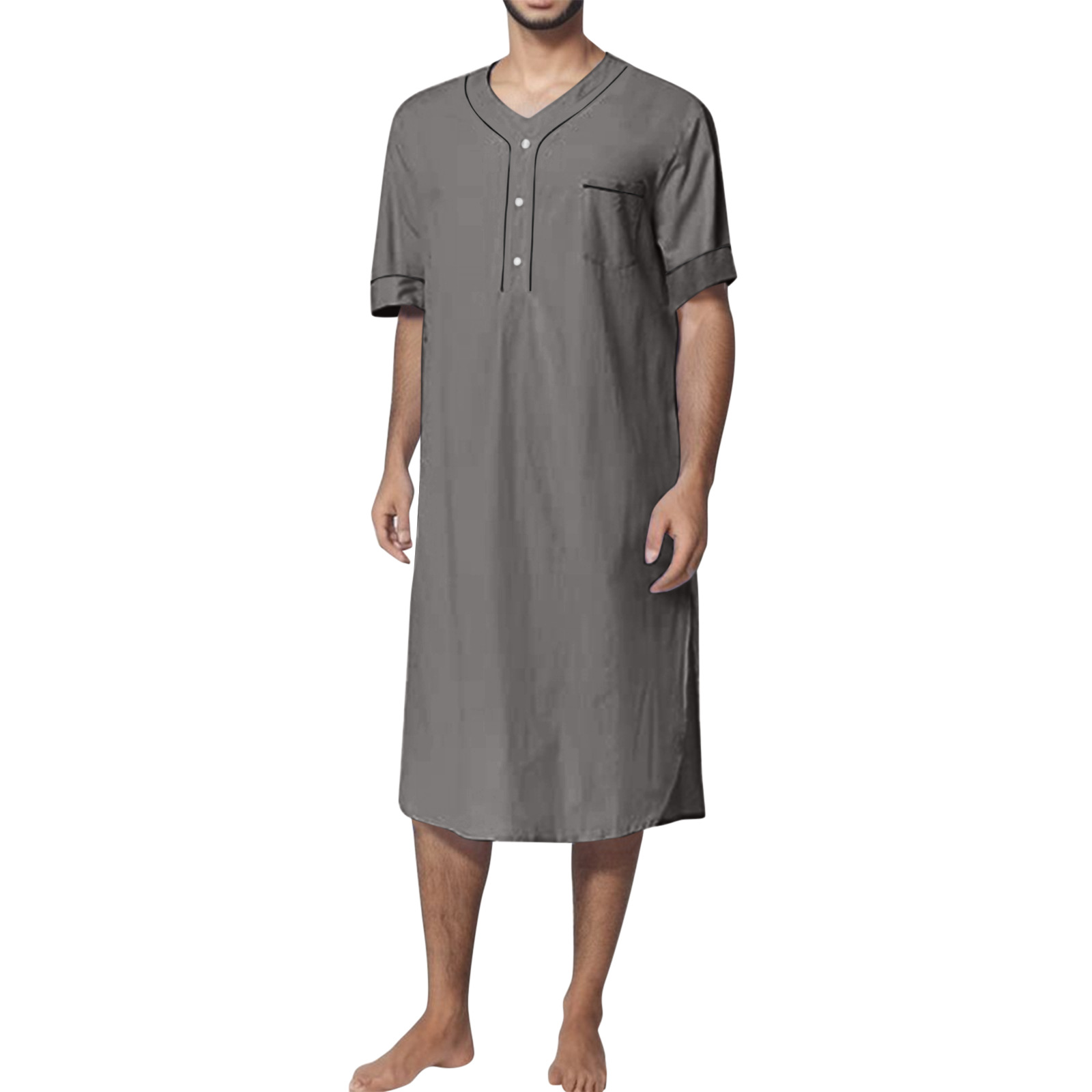2024 Summer Cross-border Amazon Camisón musulmán delgado de manga corta para hombre Camisón suelto de color sólido para el hogar