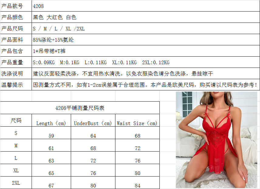 AliExpress Europea y Americana Día de San Valentín ropa interior sexy transfronteriza más el tamaño de encaje tentación ropa de casa pijamas en stock Real shot