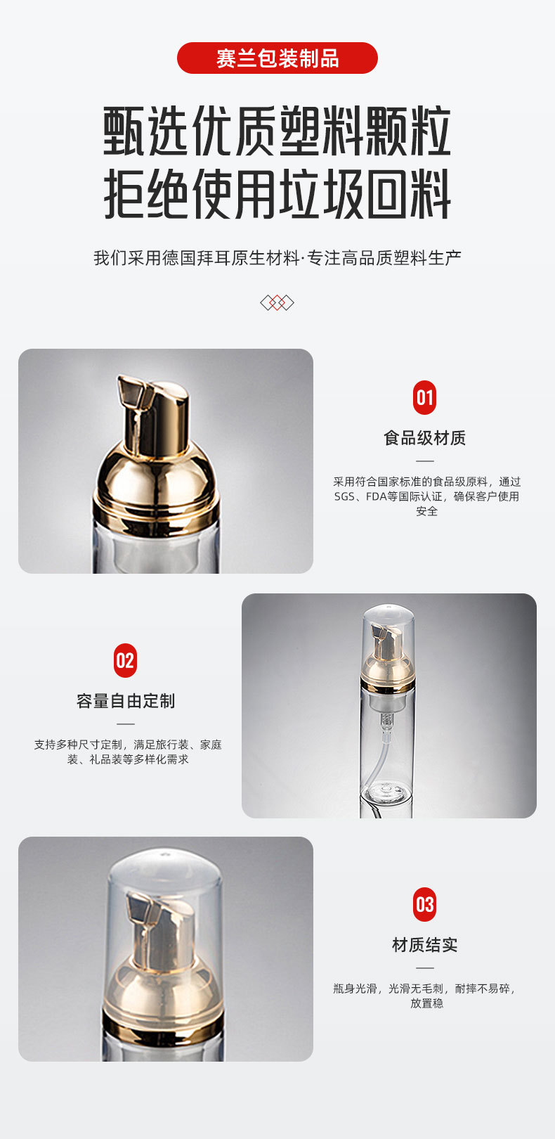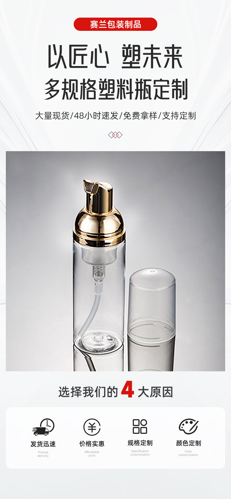 Botella de espuma transparente PET50ml botella de espuma tipo de prensa de espuma de galvanoplastia cabeza de la bomba mousse cosméticos sub-botella