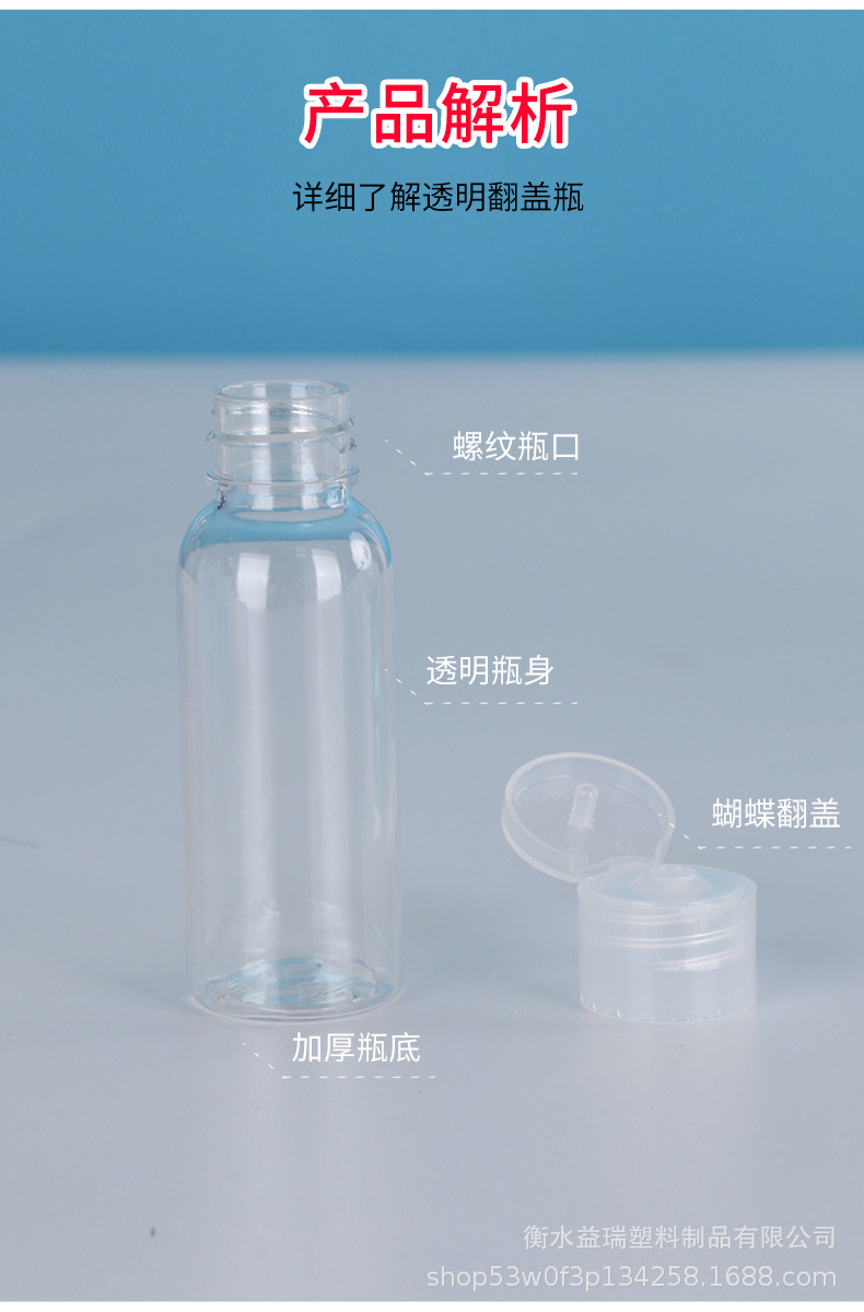 10 20 30 50 100ml ml botella de plástico PET botella transparente cubierta de mariposa botella de tapa cosmética botella de solapa