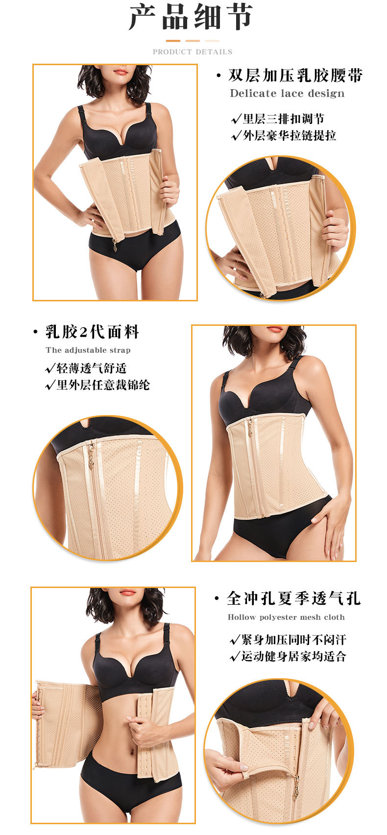 Oro cremallera látex transpirable cintura corsé cinturón deportes apretado plástico cinturón postparto cintura conformación ropa