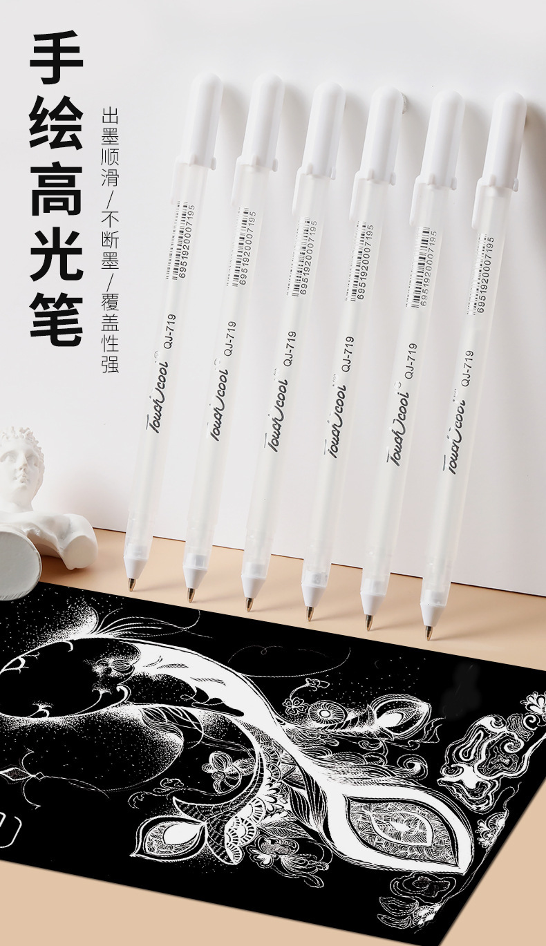 Resalte pluma blanco graffiti gancho pluma arte estudiante de dibujos animados pintura color aceite pluma diario pluma marcador pluma al por mayor