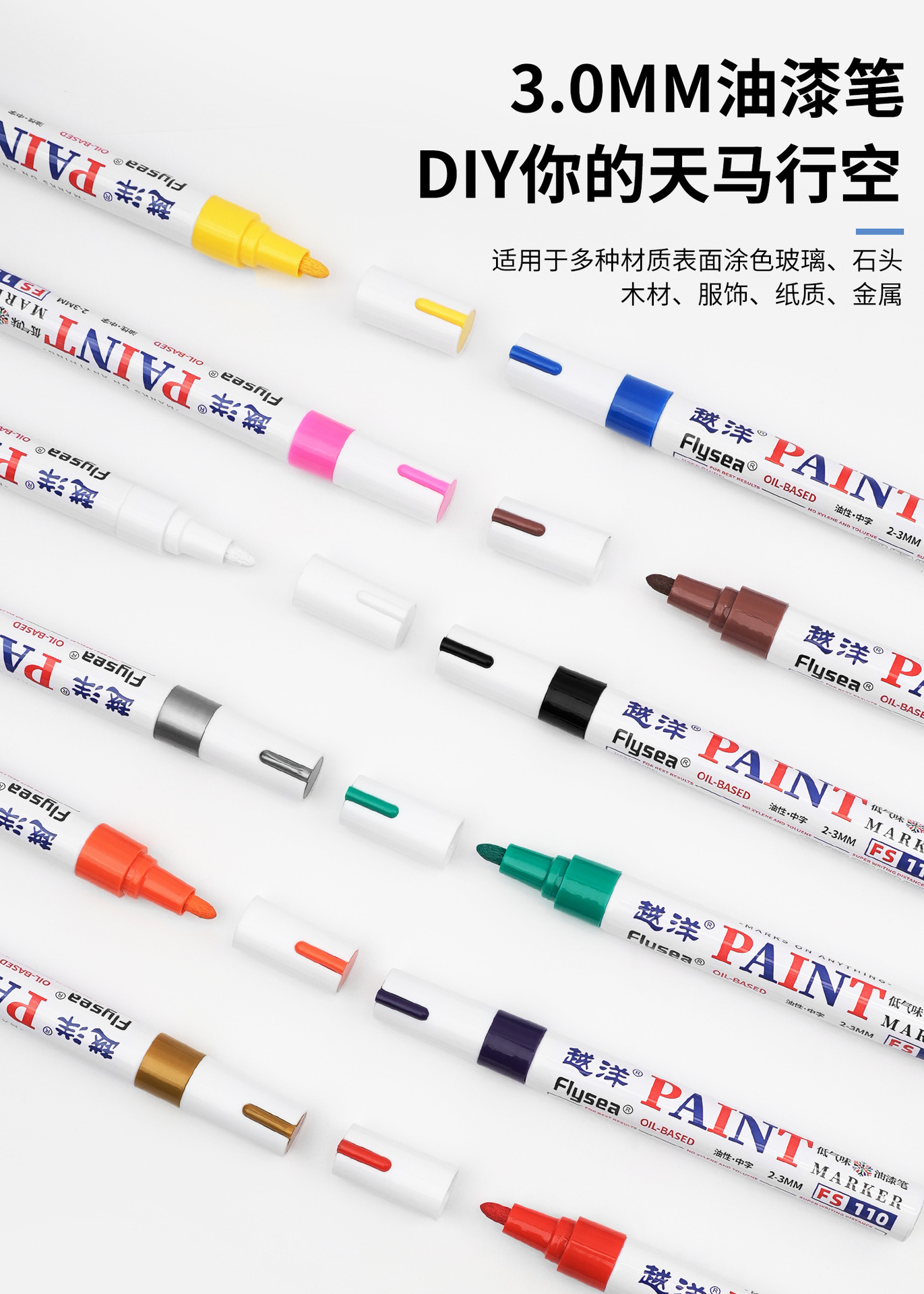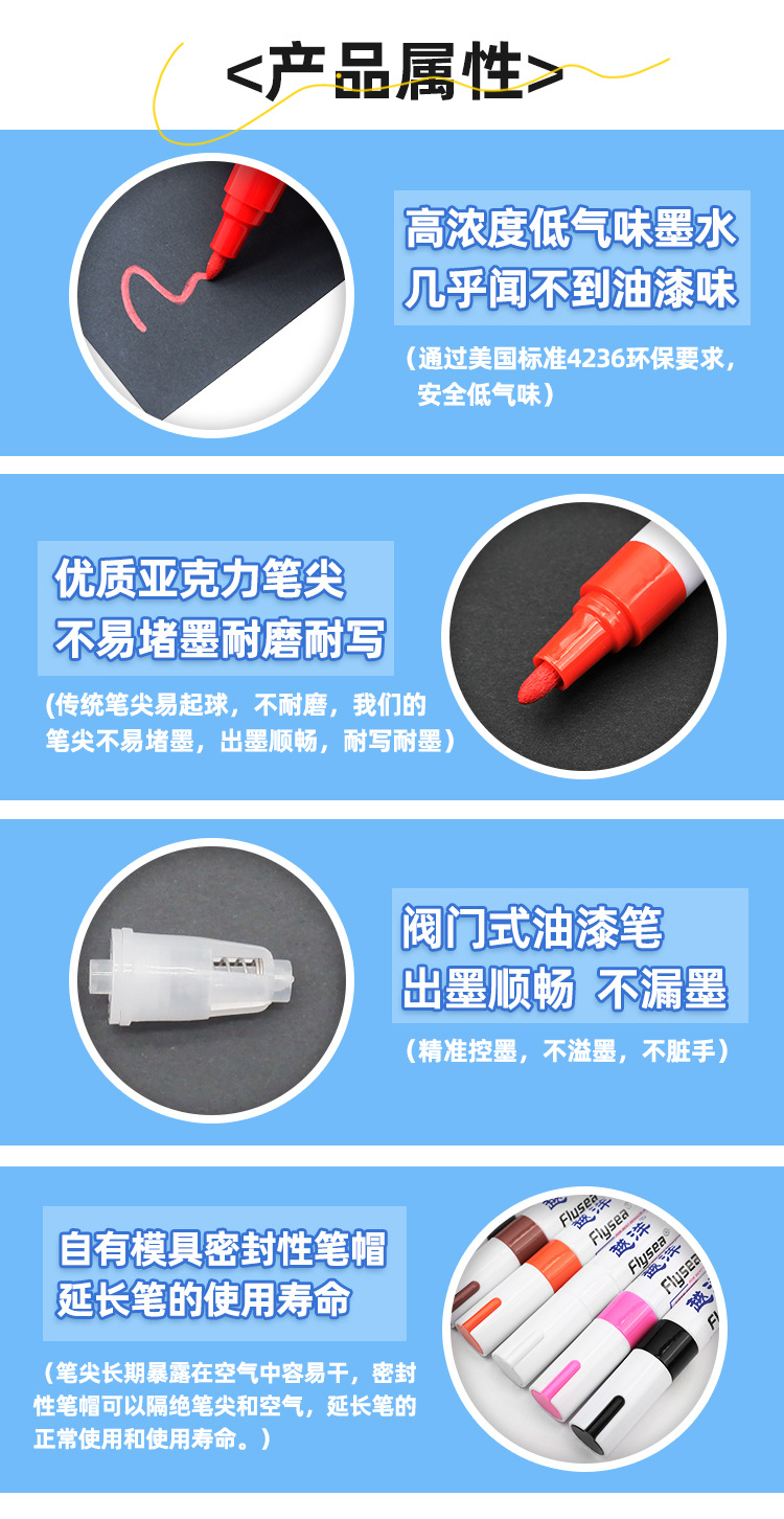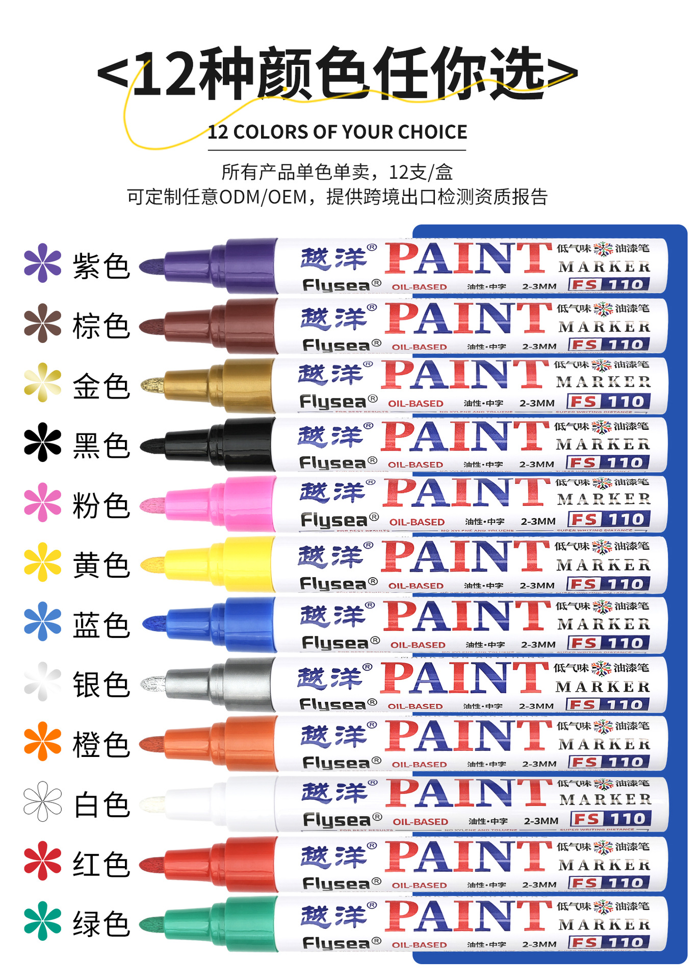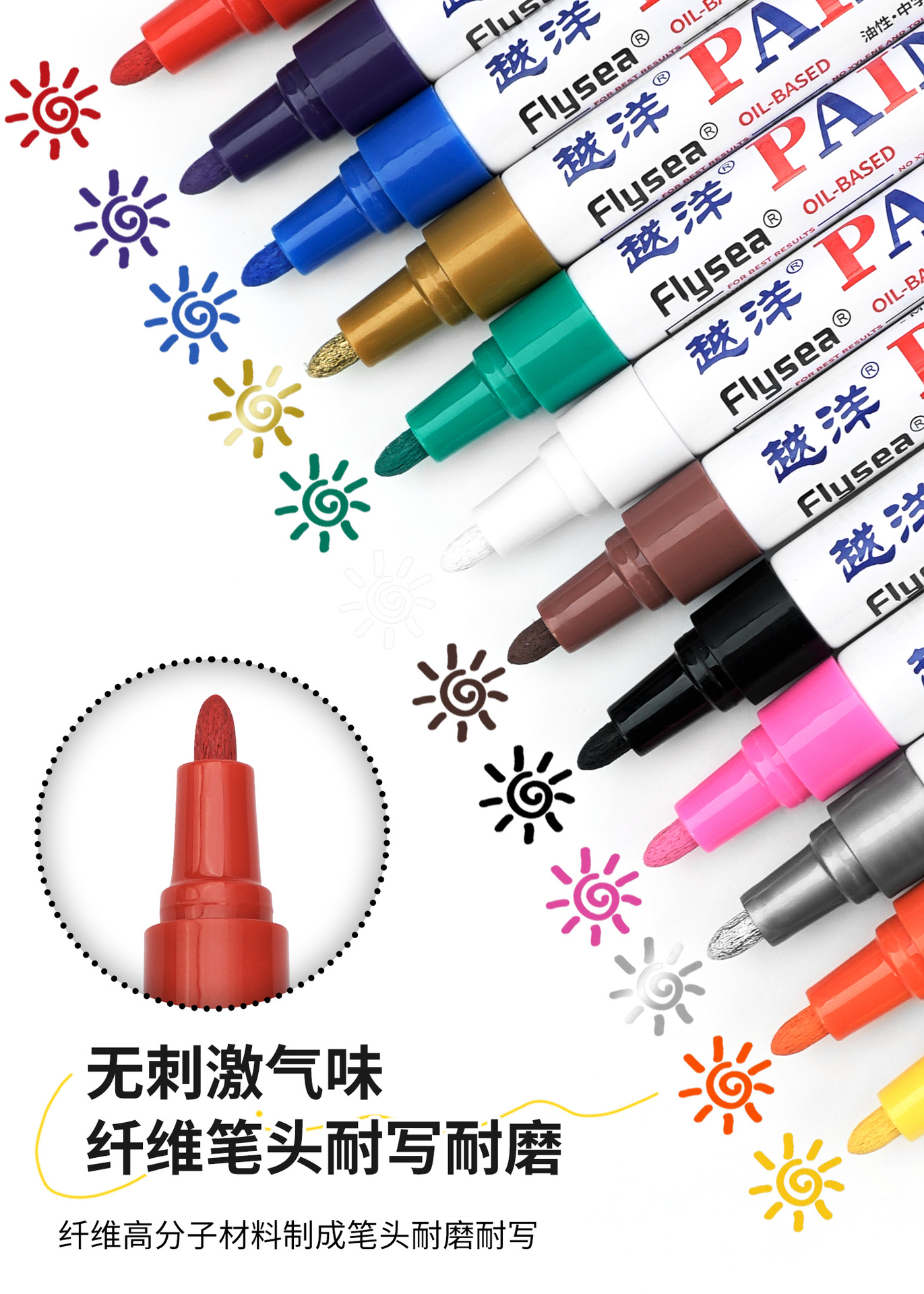 Yuanyang 12-color bajo olor impermeable metal pintura pluma artesanía coche neumático plástico vidrio graffiti pintura pluma