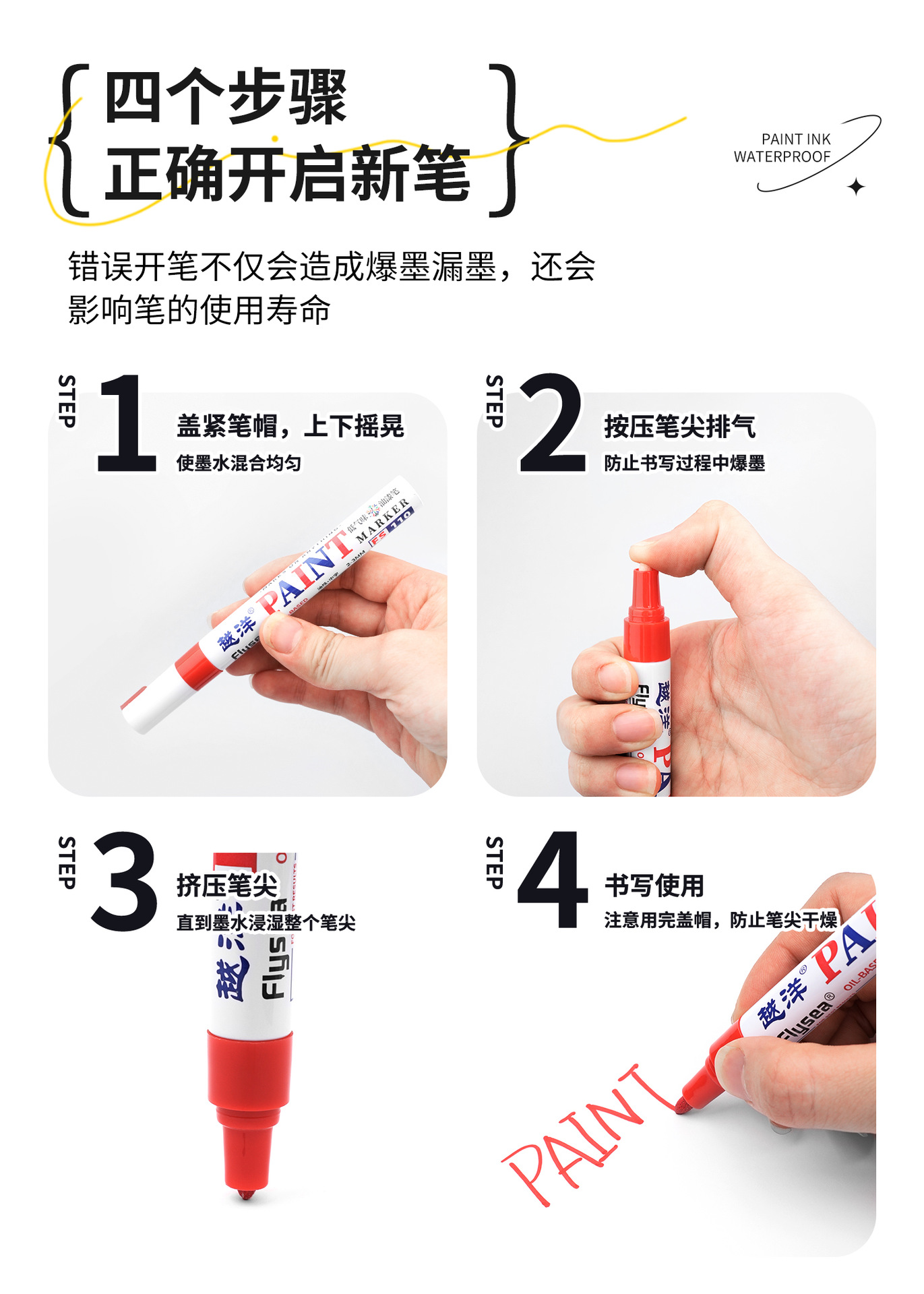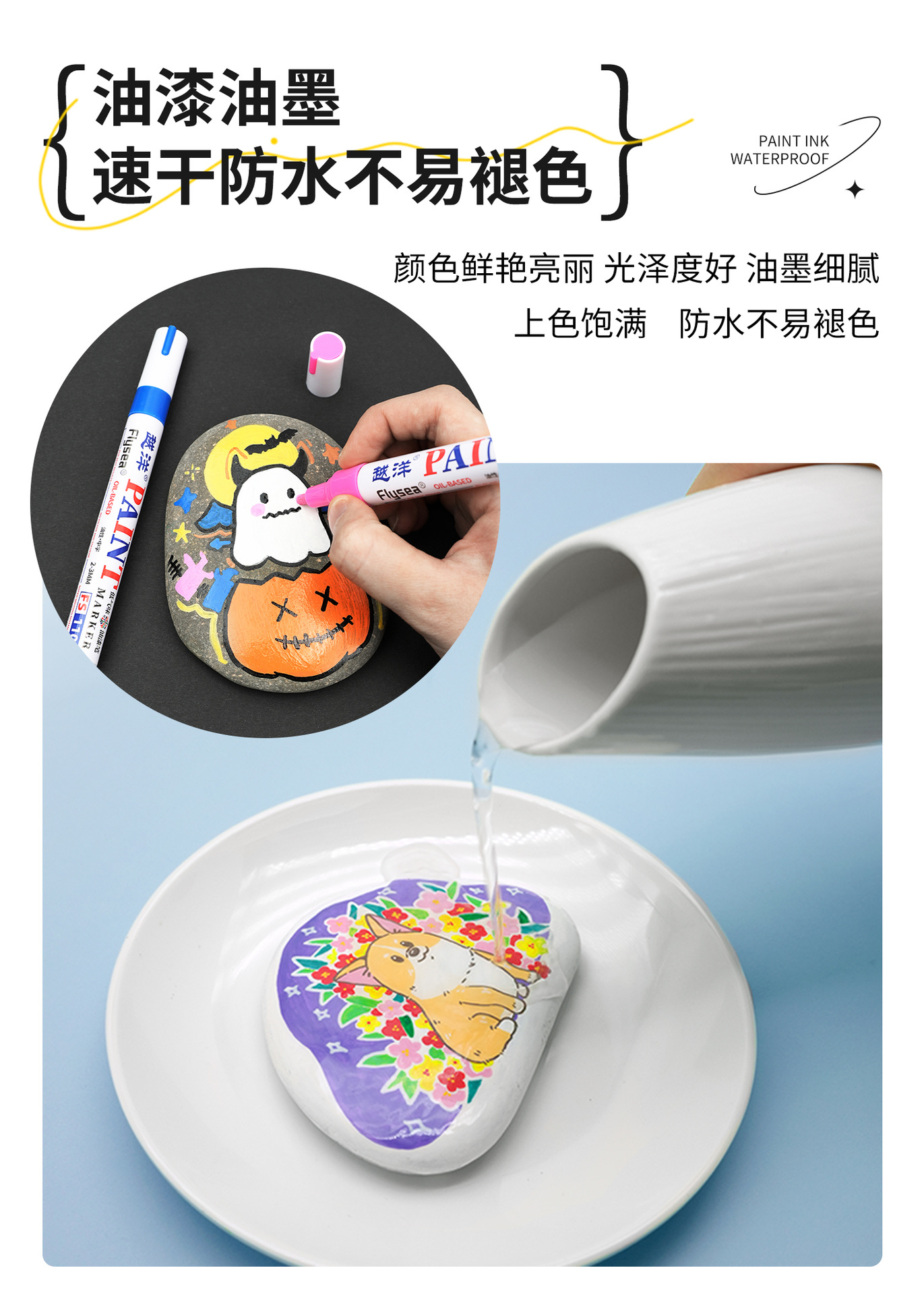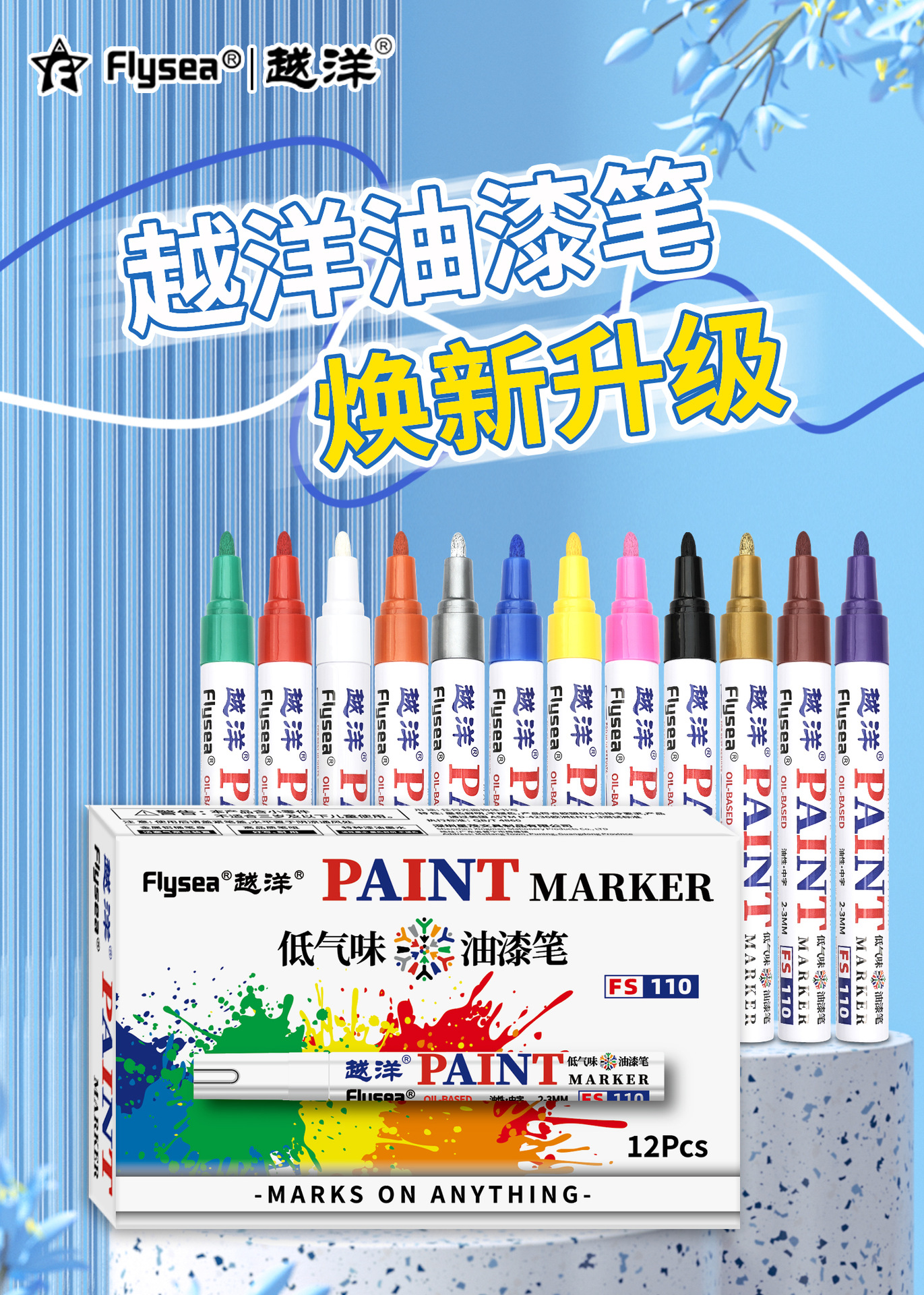 Yuanyang 12-color bajo olor impermeable metal pintura pluma artesanía coche neumático plástico vidrio graffiti pintura pluma