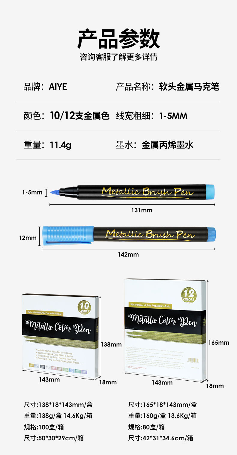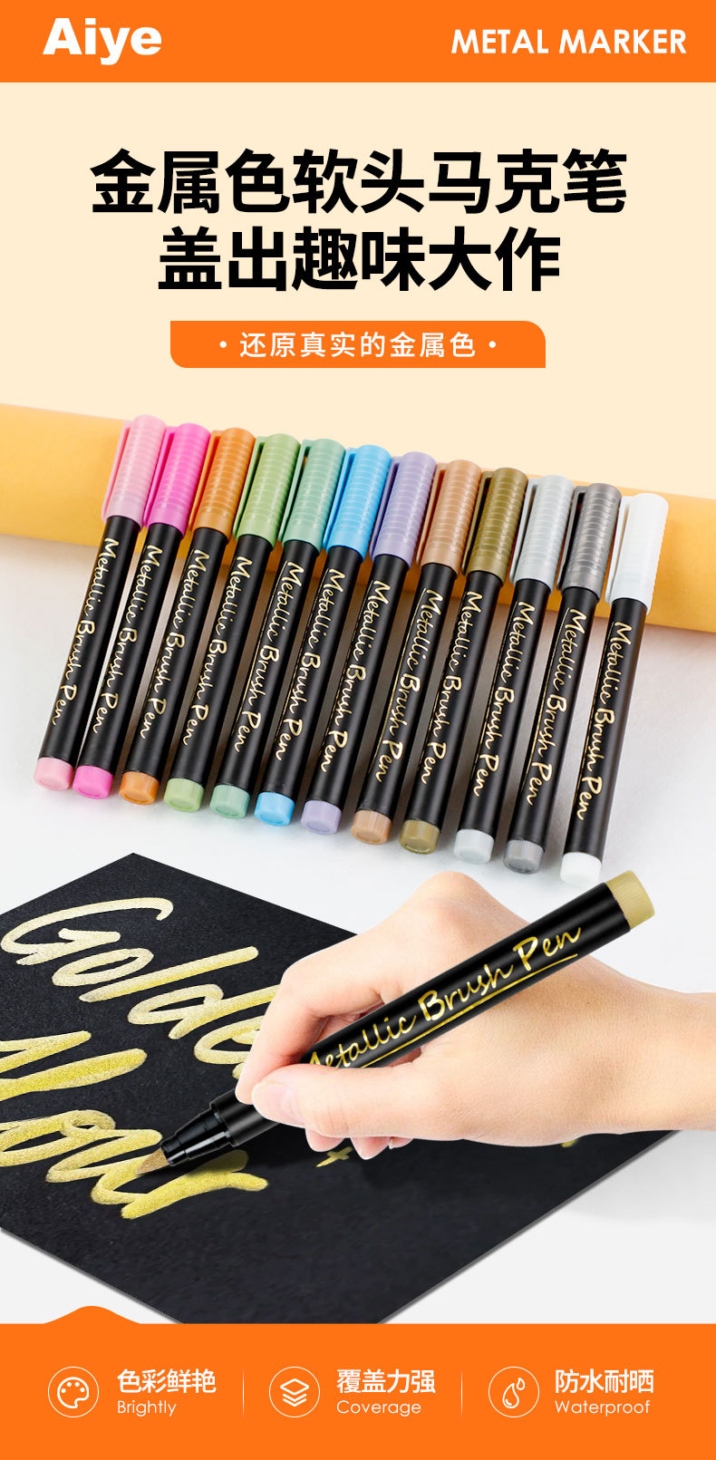 Aiya metal marcador de punta suave gancho línea de bolígrafo de pintura modelo retoque de pintura hecho a mano colorante marcador impermeable y no se desvanece